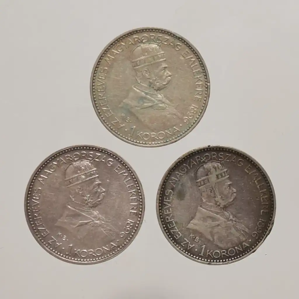 #016 Ferenc József millenniumi ezüst 1 Korona LOT (3 db)
