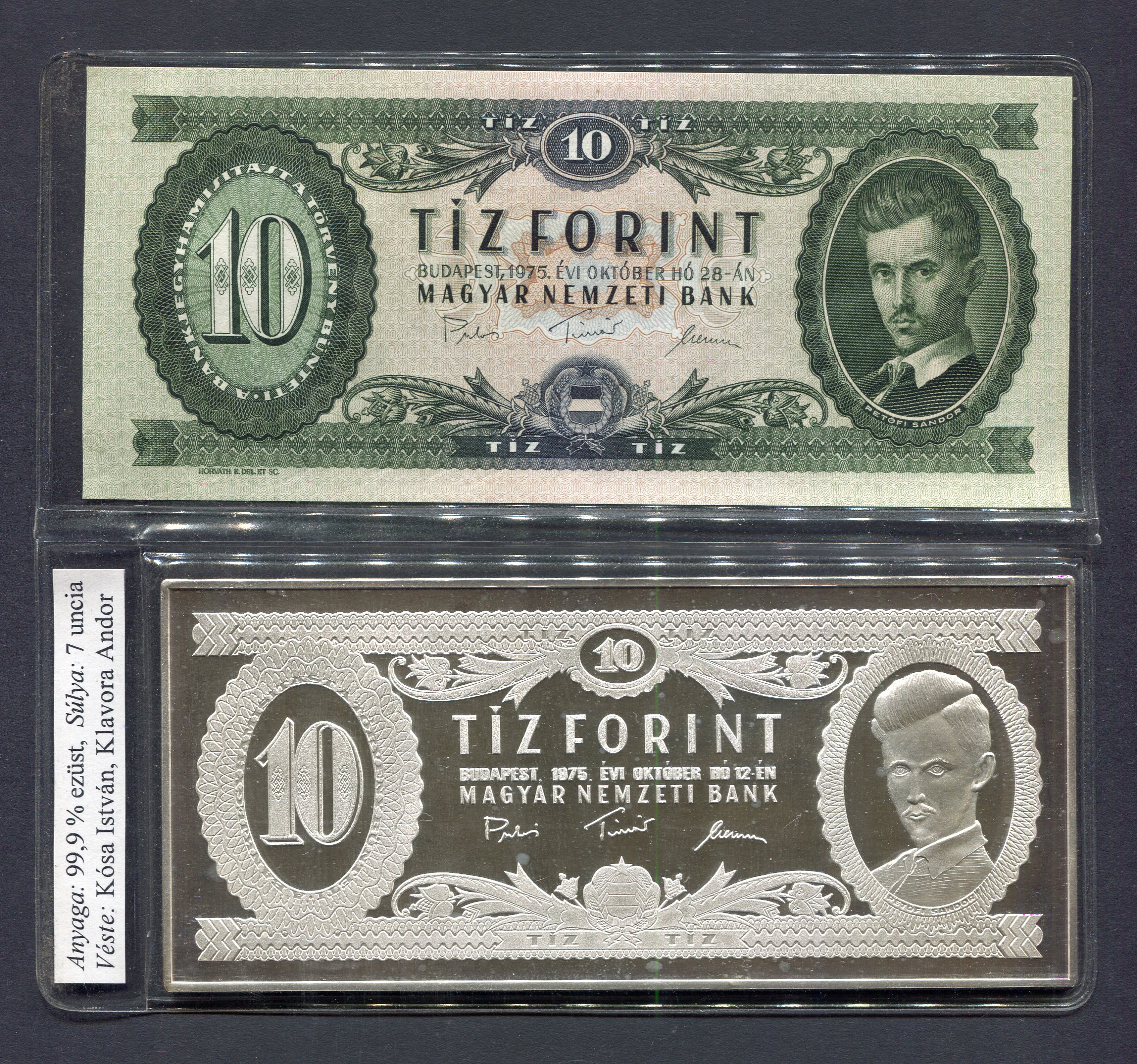 #001 1975 MNB 10 Forint UNC + színezüst bankjegyveret (7 uncia)