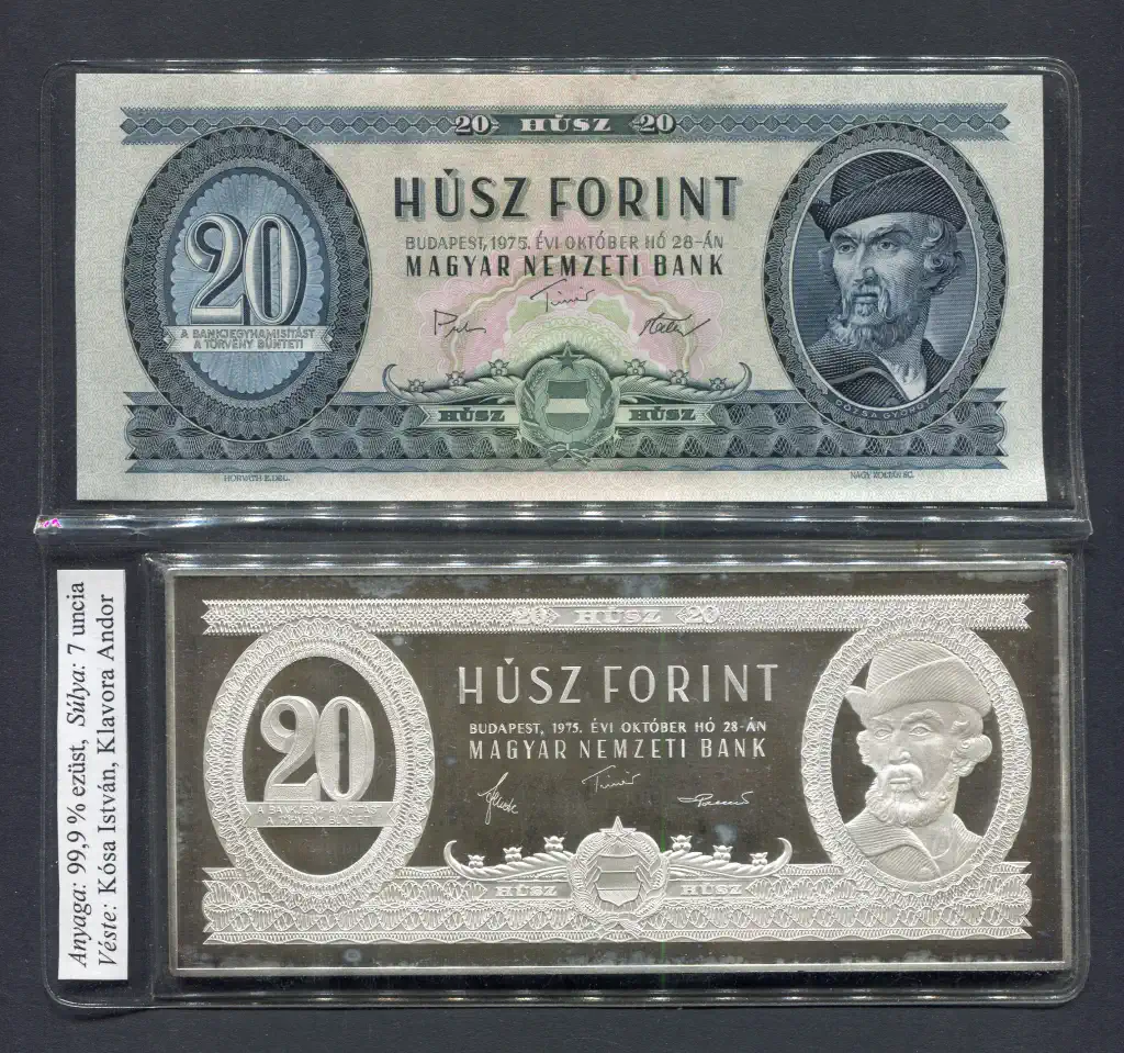 #002 1975 MNB 20 Forint UNC + színezüst bankjegyveret (7 uncia)