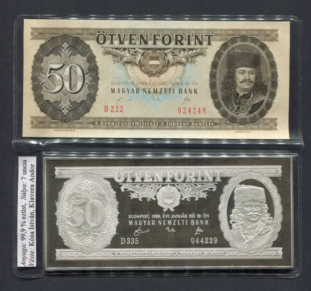 #003 1989 MNB 50 Forint UNC + színezüst bankjegyveret (7 uncia)