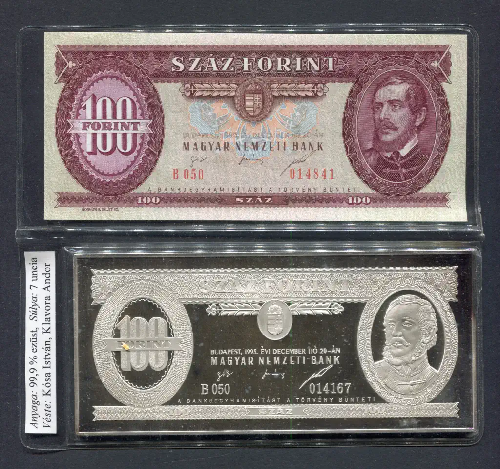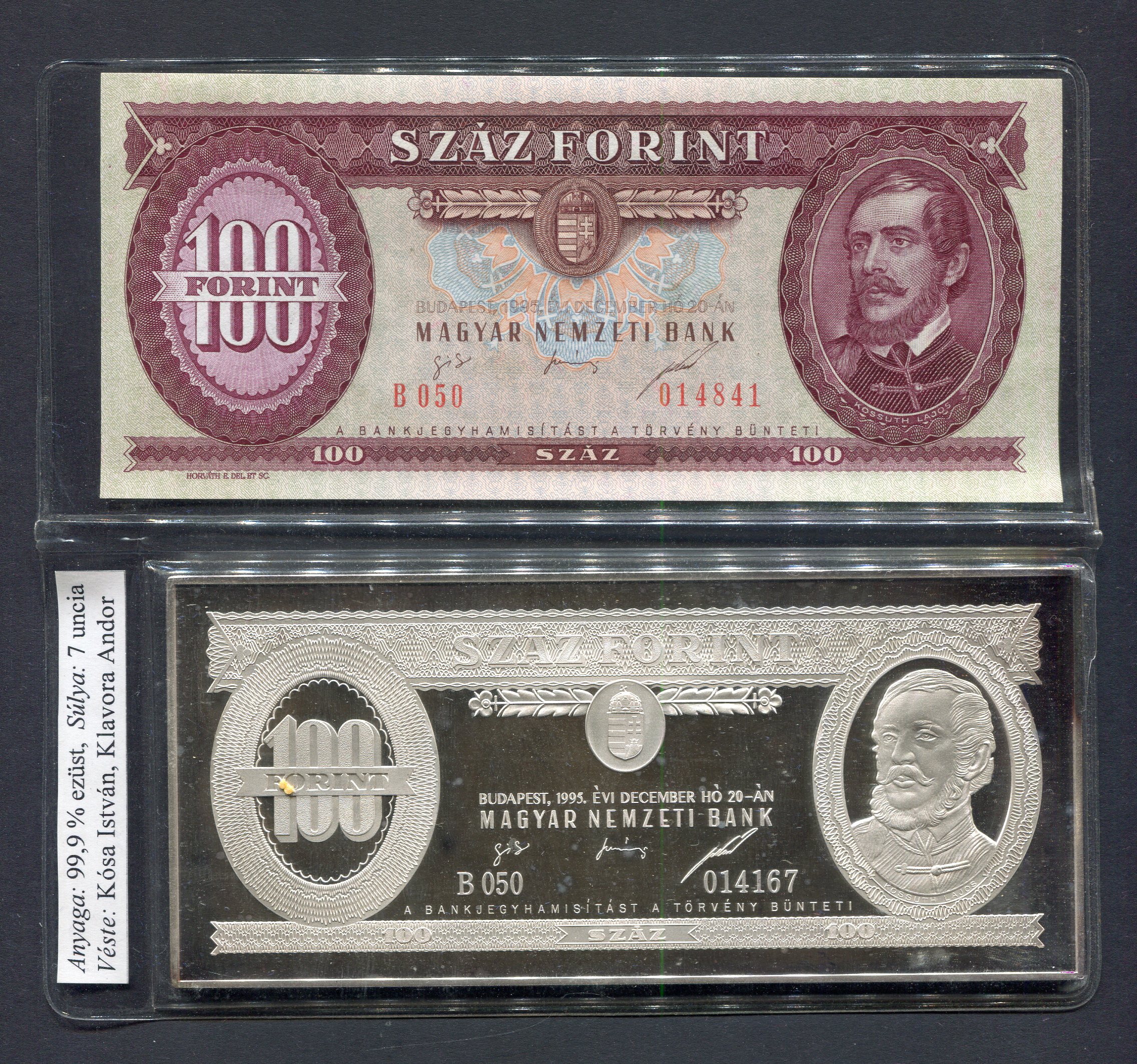 #004 1995 MNB 100 Forint UNC + színezüst bankjegyveret (7 uncia)