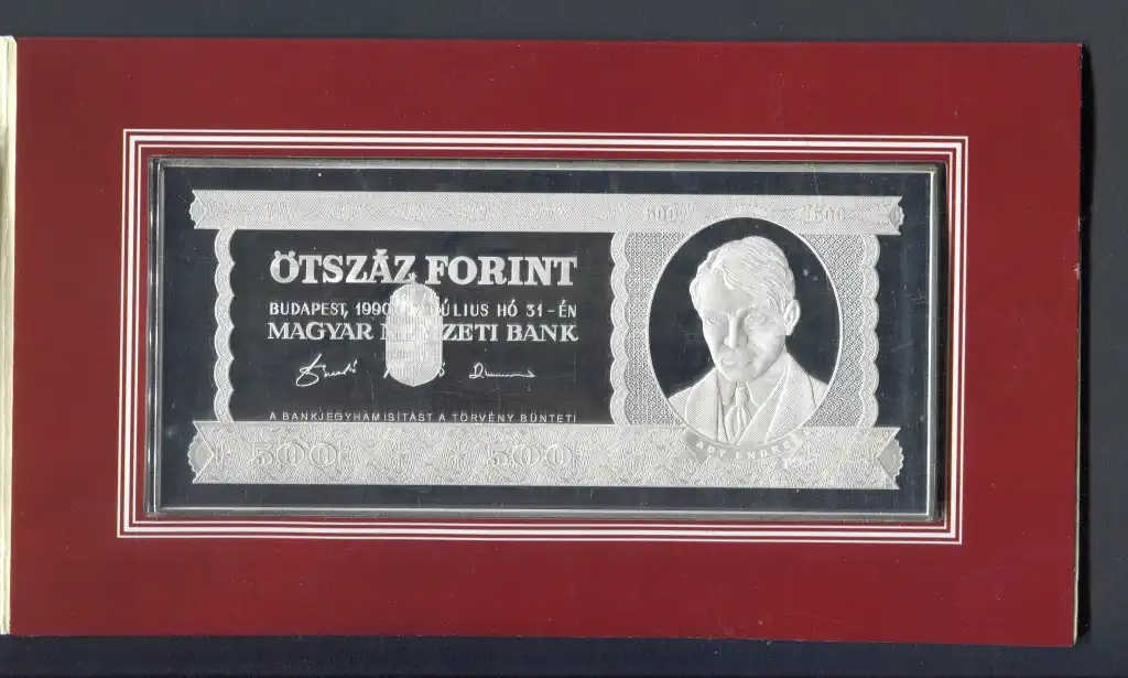 #005 1990 MNB 500 Forint UNC + színezüst bankjegyveret (7 uncia)