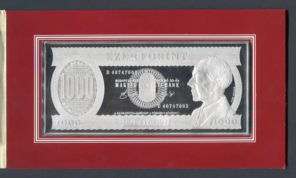 #006 1992 MNB 1000 Forint UNC + színezüst bankjegyveret (7 uncia)