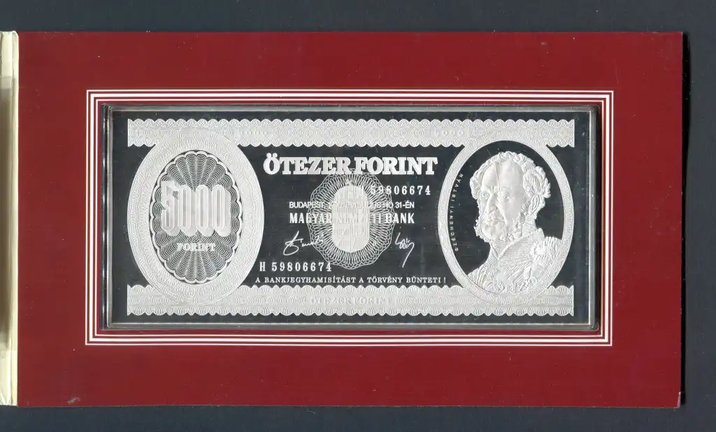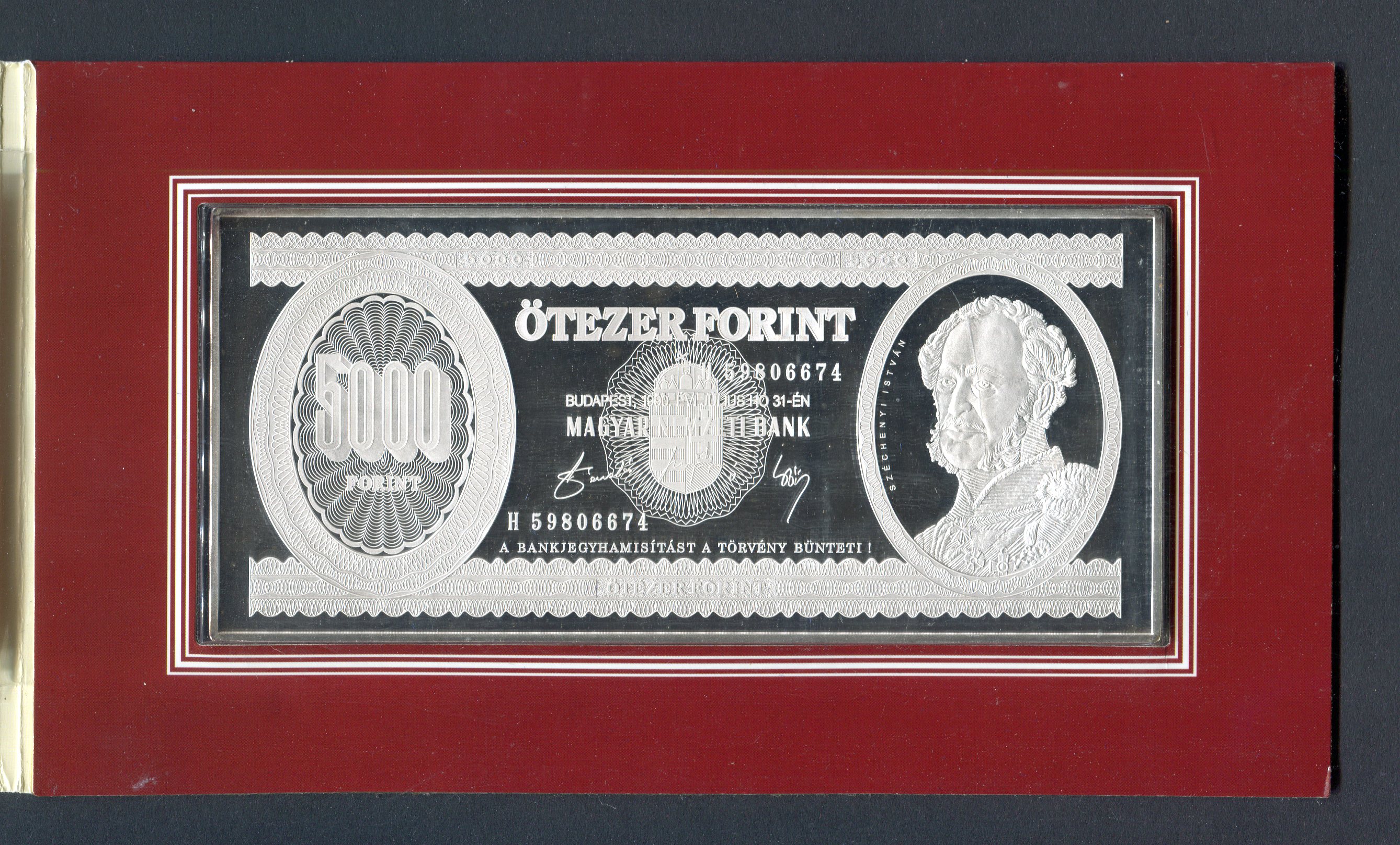 #007 1990 MNB 5000 Forint UNC + színezüst bankjegyveret (7 uncia)