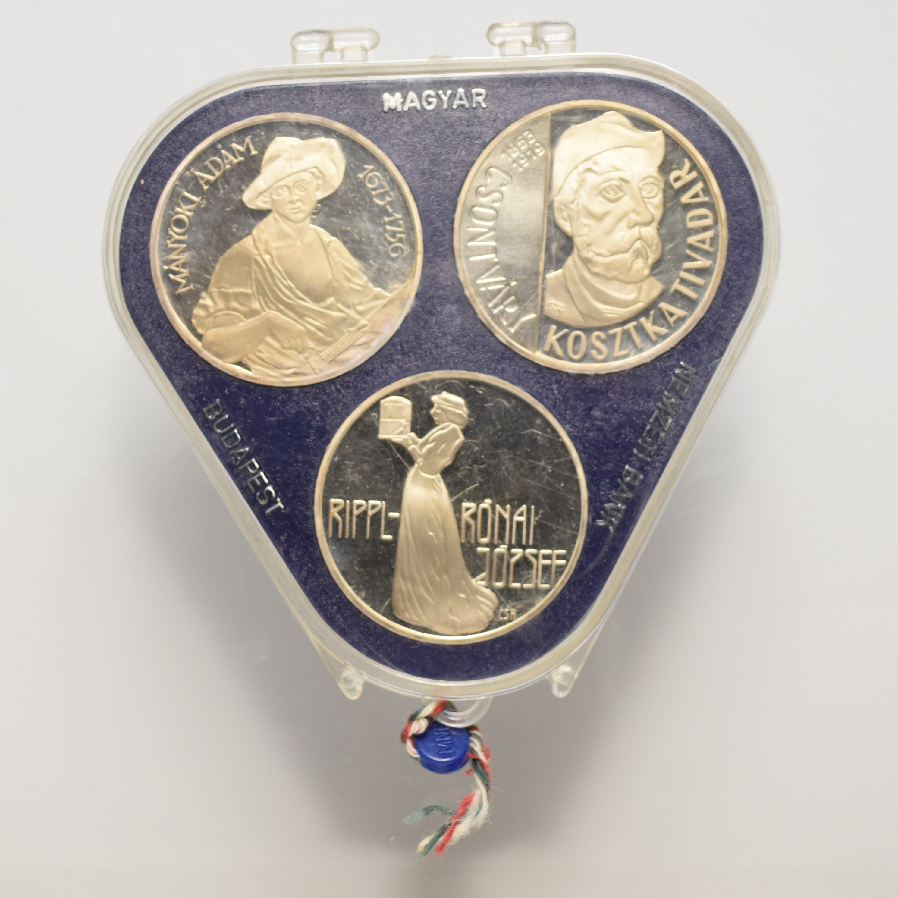 #056 1977 Festő sor ezüst 200 Forint (3 db, gyári tokban) PP