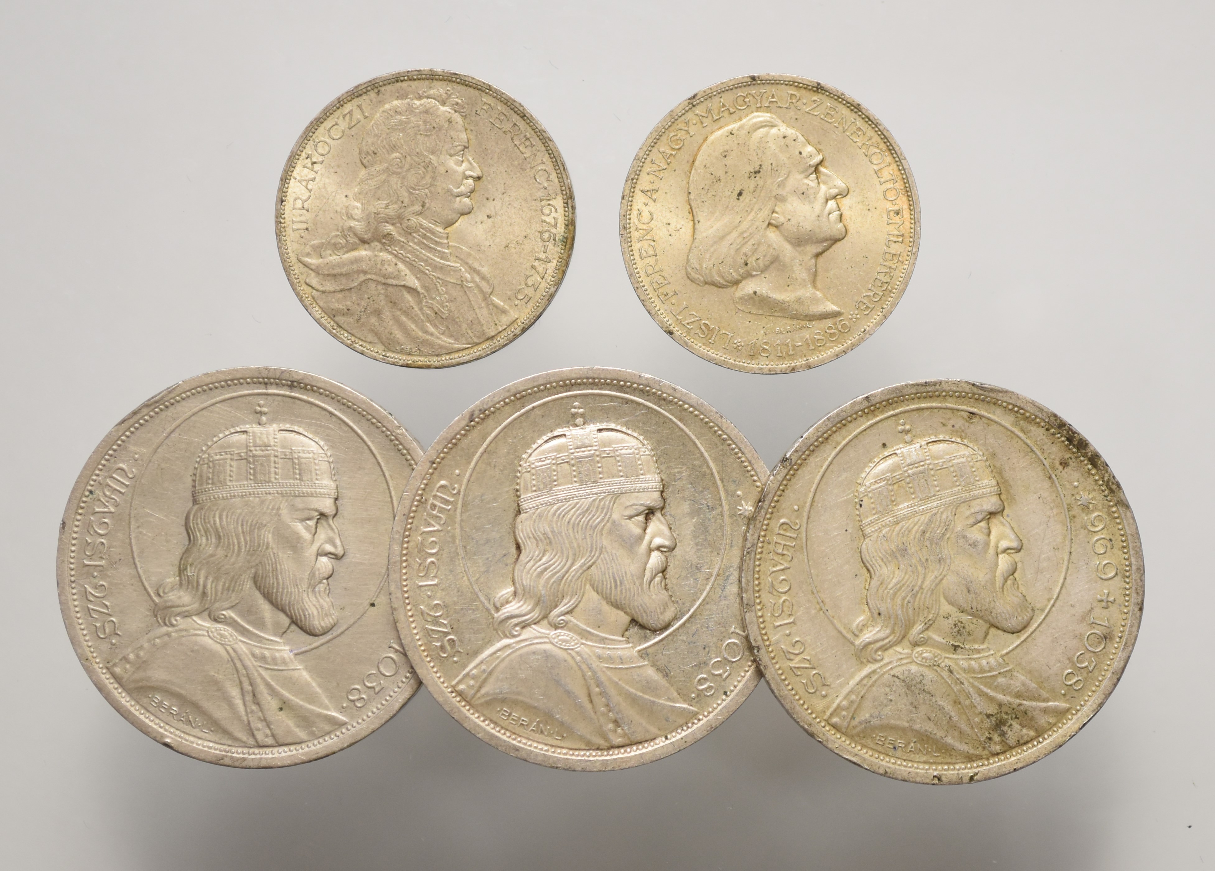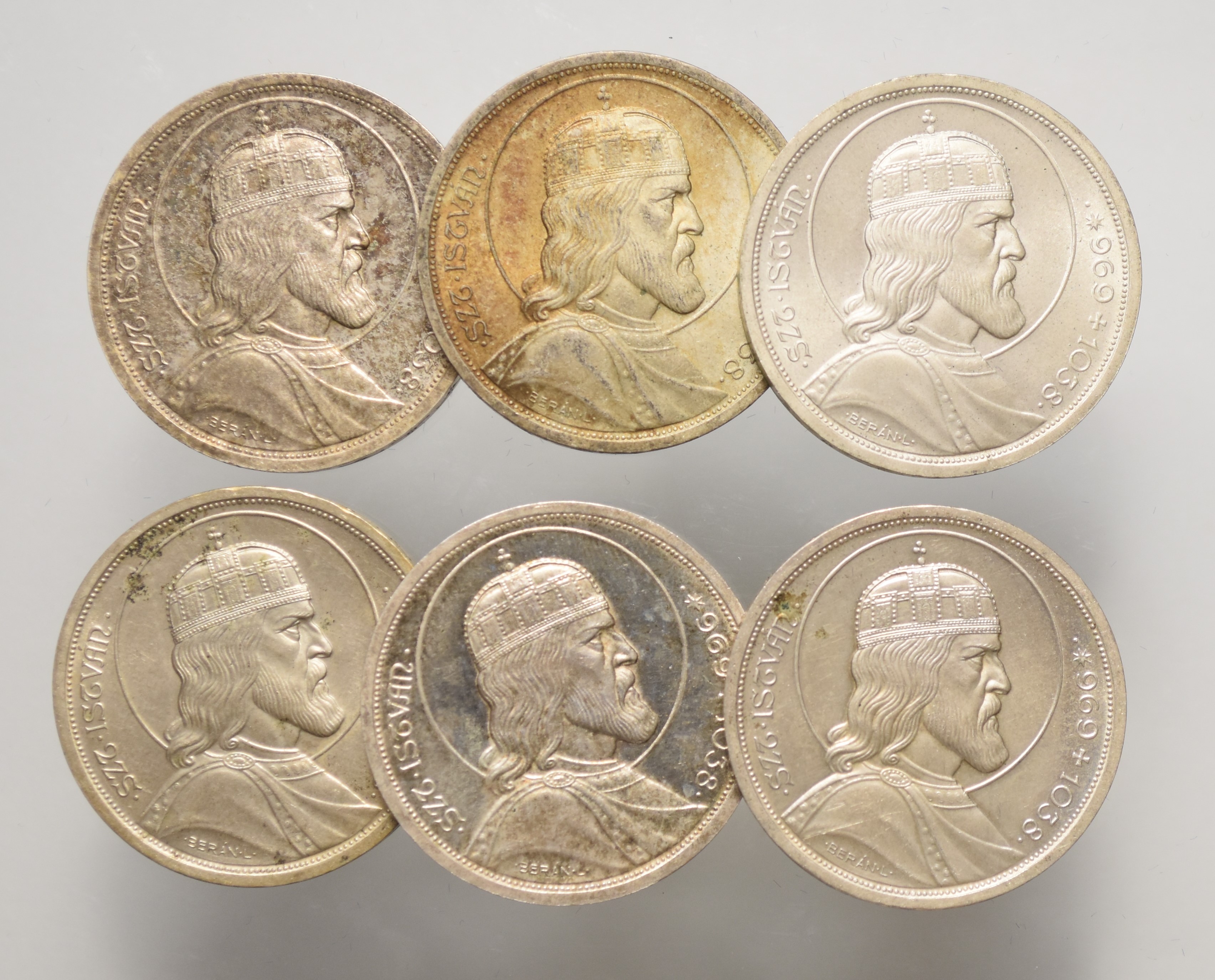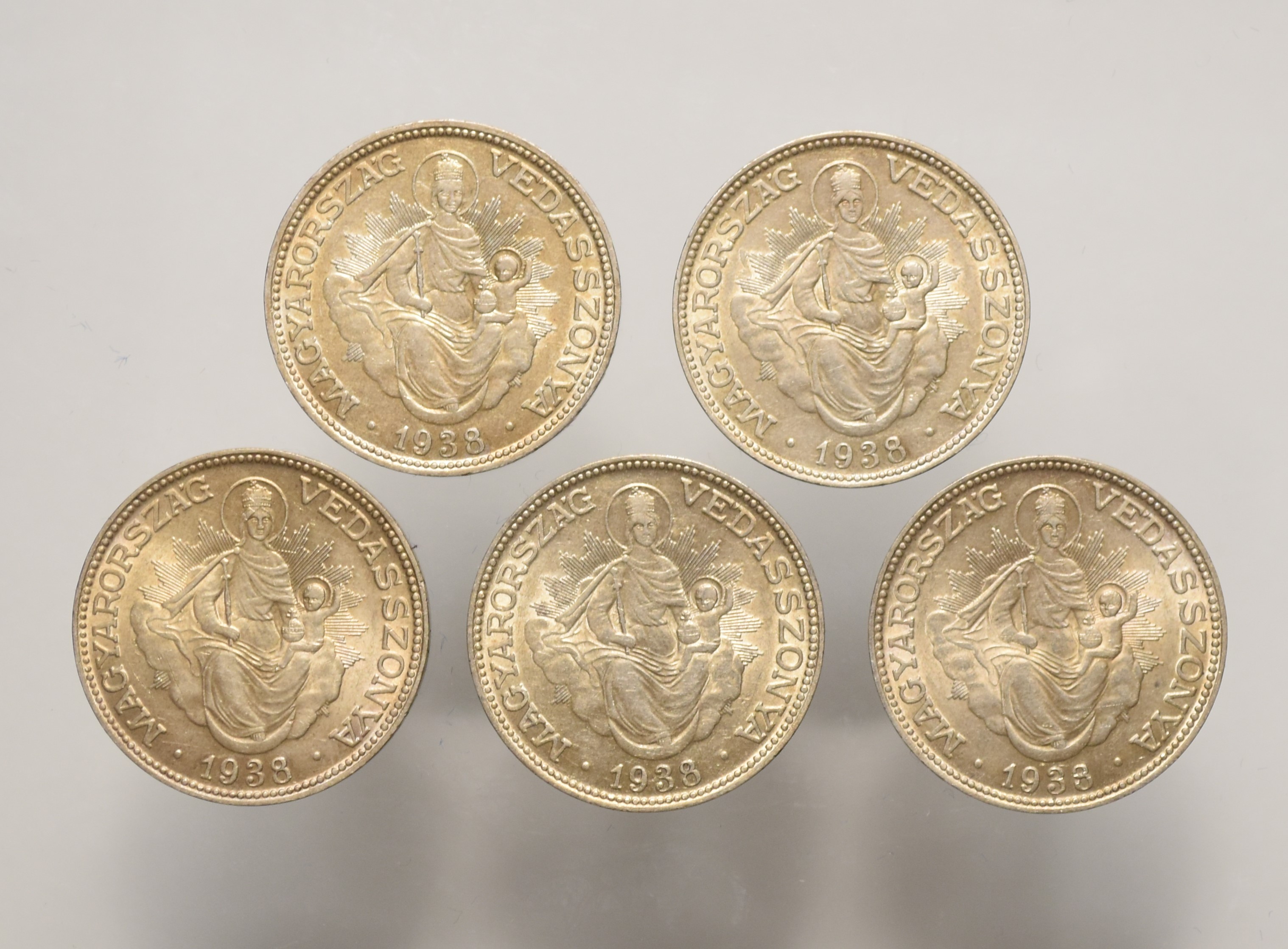 #081 1938 Szent István ezüst 5 Pengő LOT (6 db)