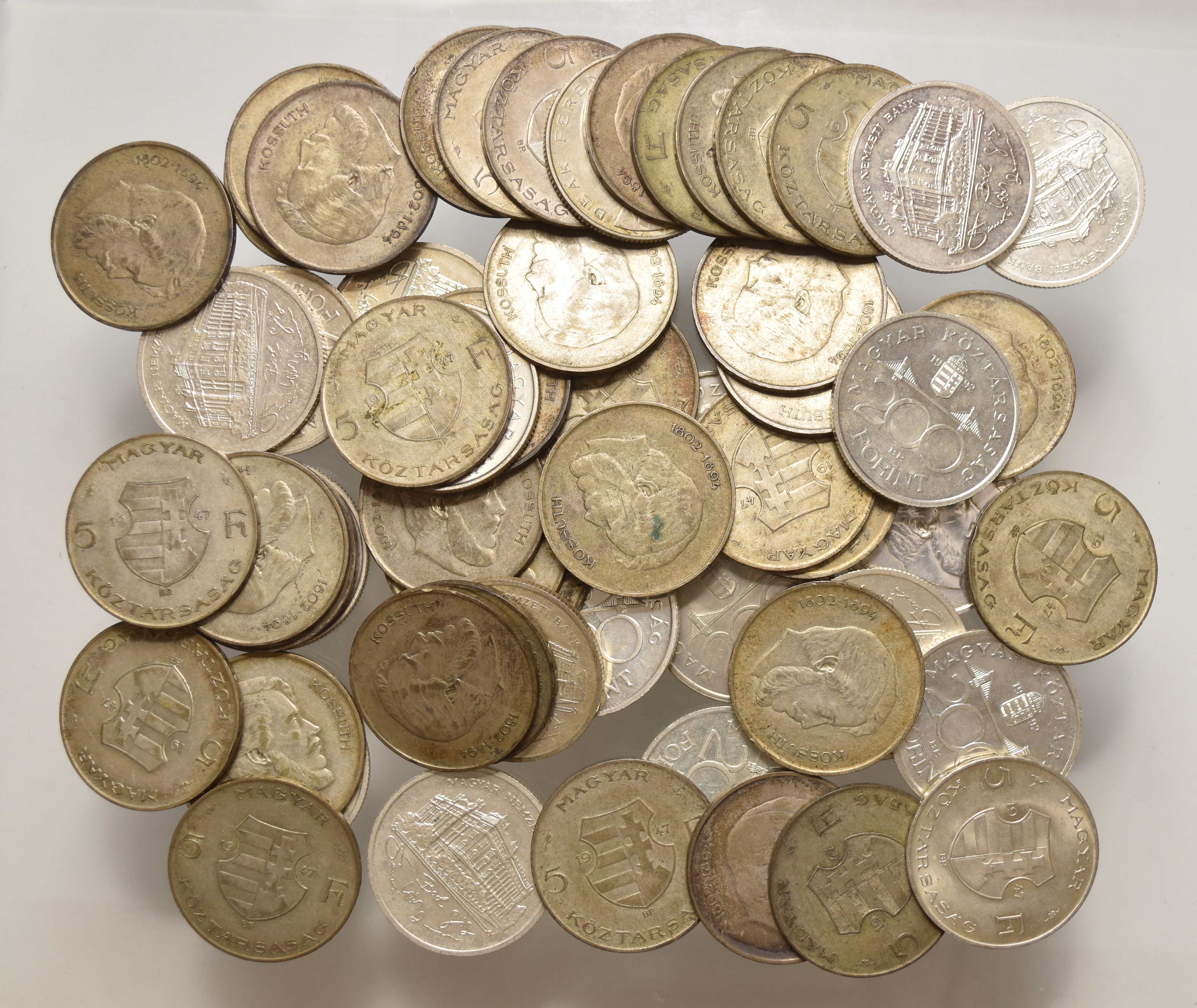 #085 Ezüst 5 Forint (1947) és ezüst 200 Forintosok vegyesen (61 db)