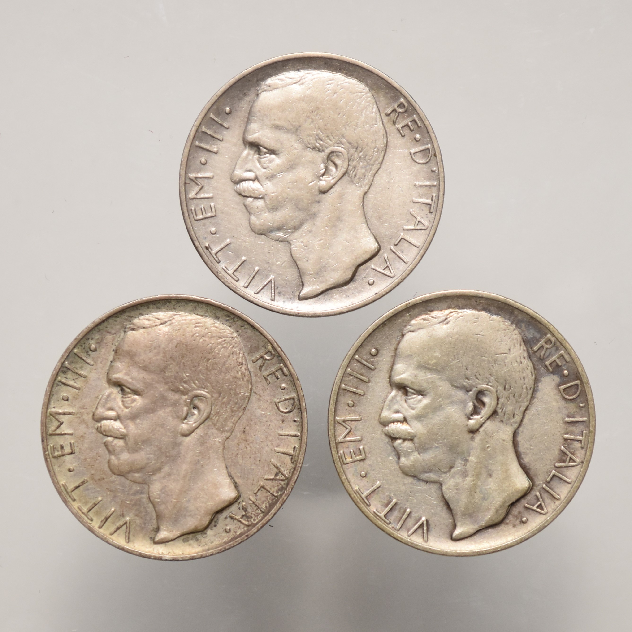 #109 Olaszország 1927 ezüst 5 Líra LOT (3 db)