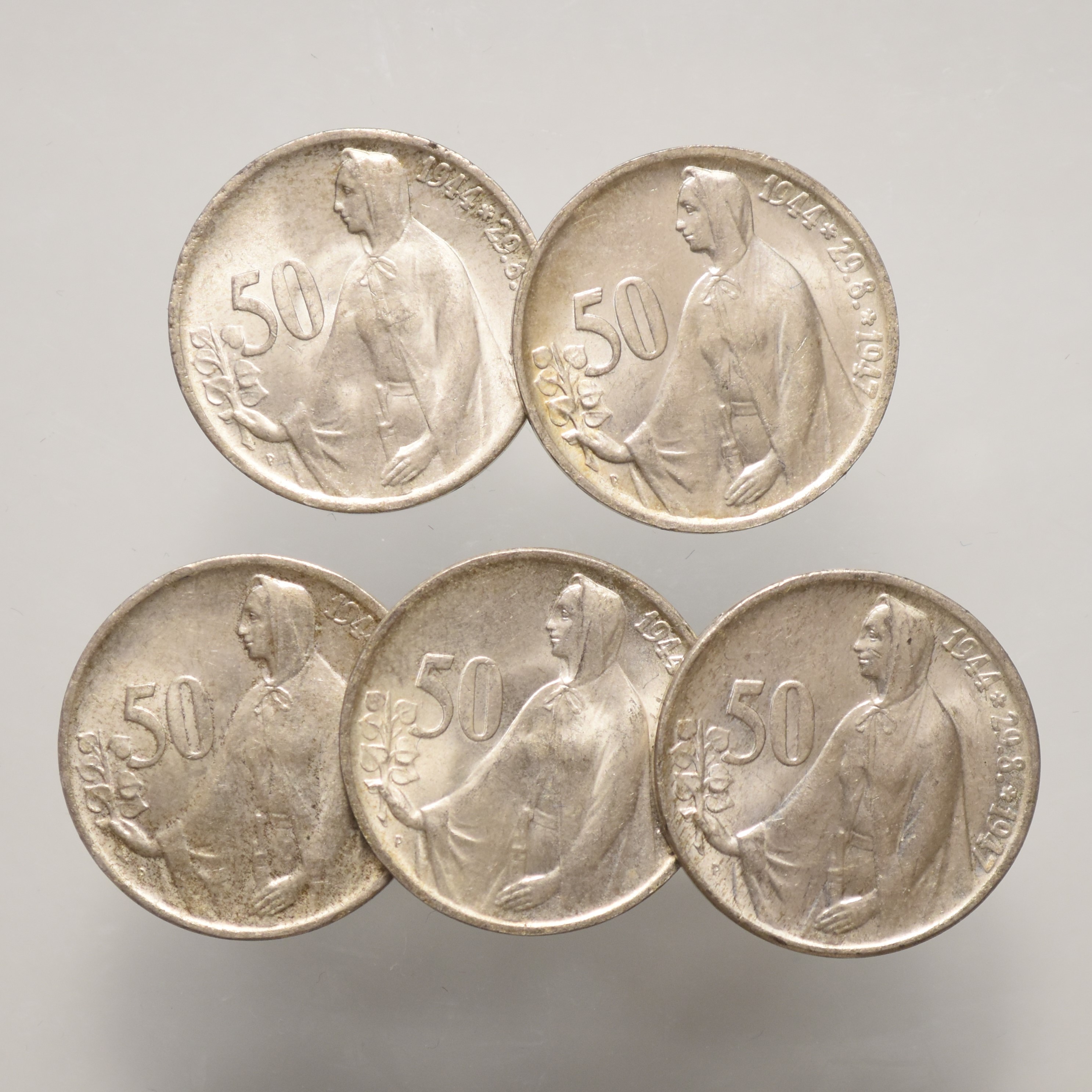 #111 Csehszlovákia 1944 ezüst 50 Korona csomag (5 db)