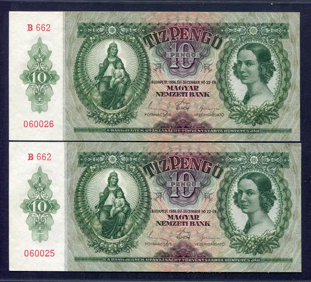 #119 1936 sorszámkövető 10 pengő pár (hajtatlan)