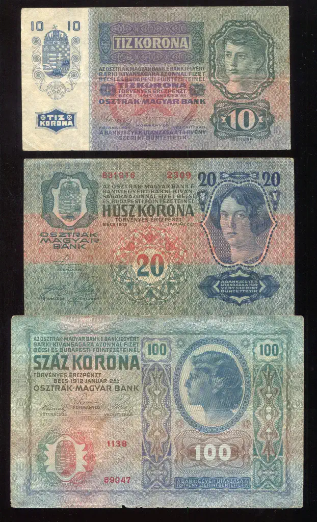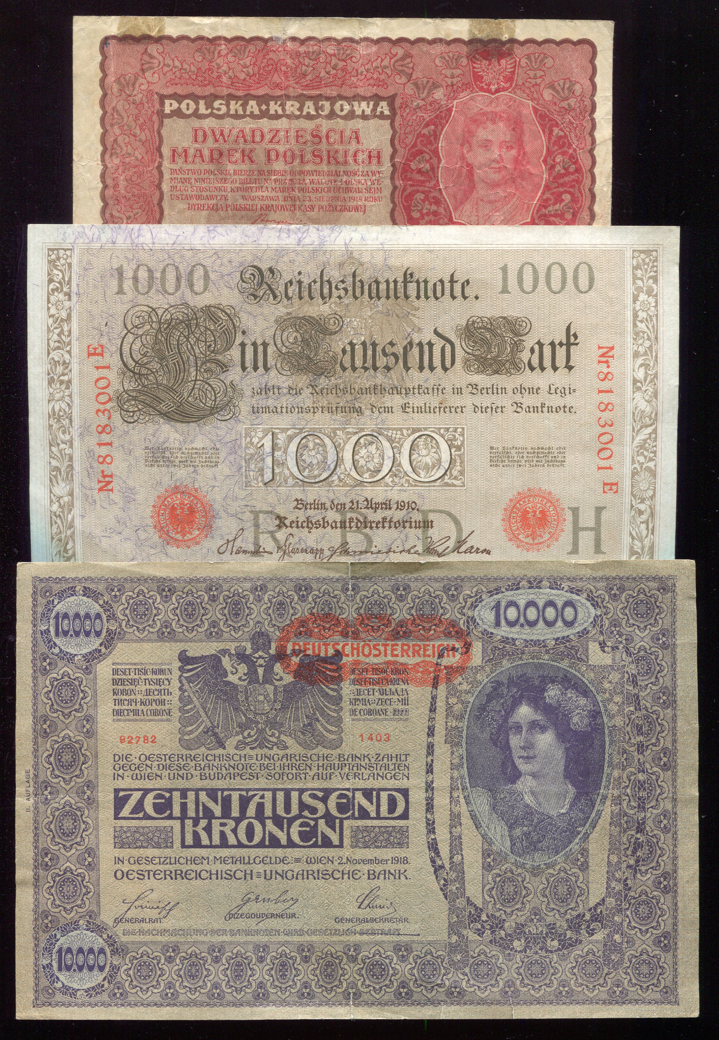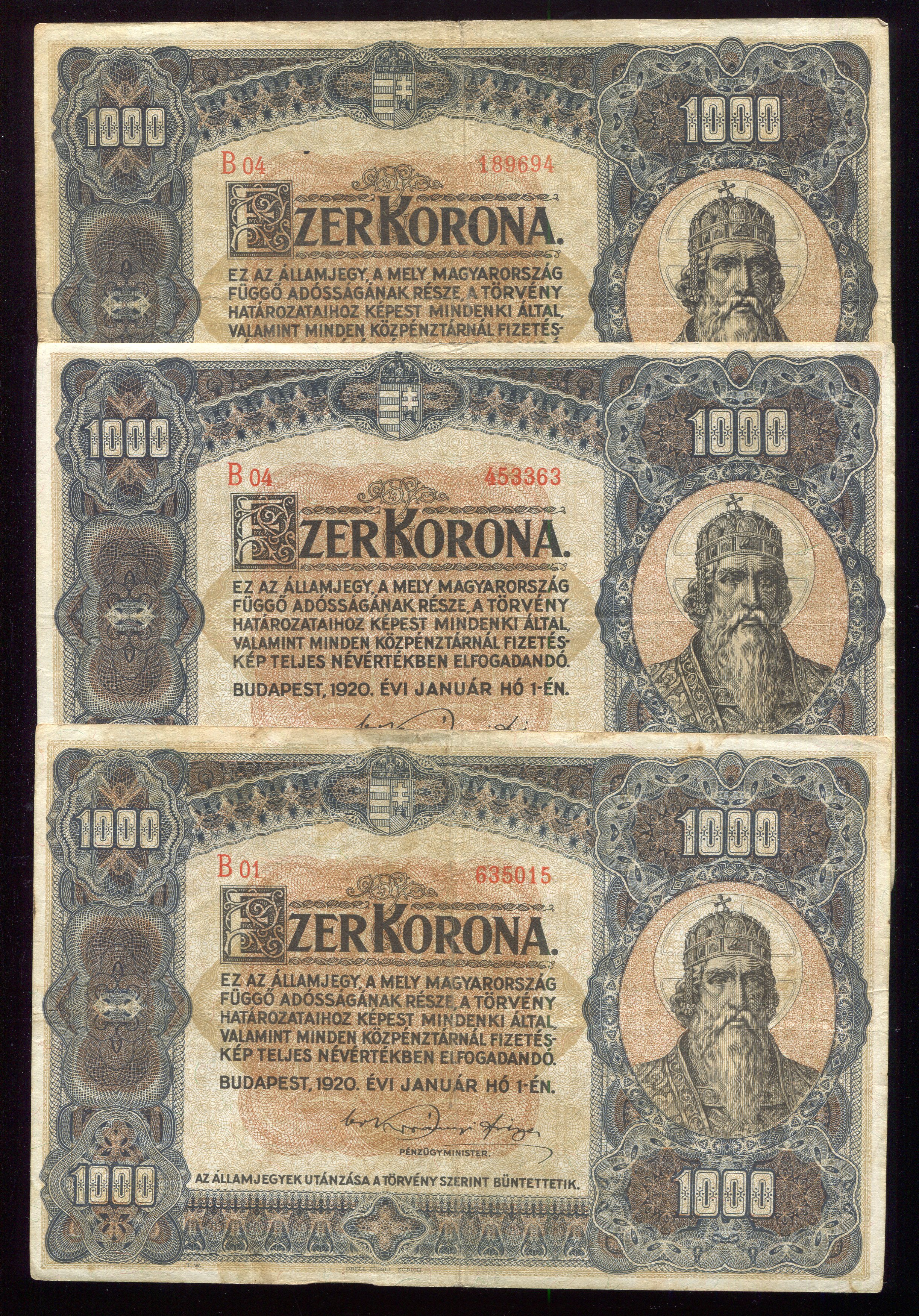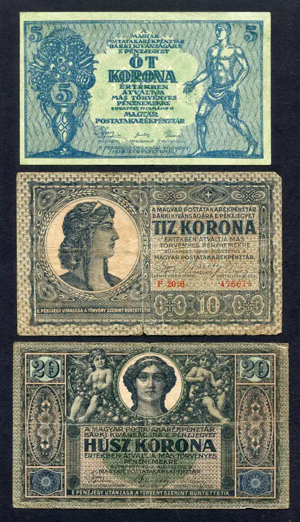 #124 1919 5 korona (VF) + 10 - 20 korona (F) (3 db)