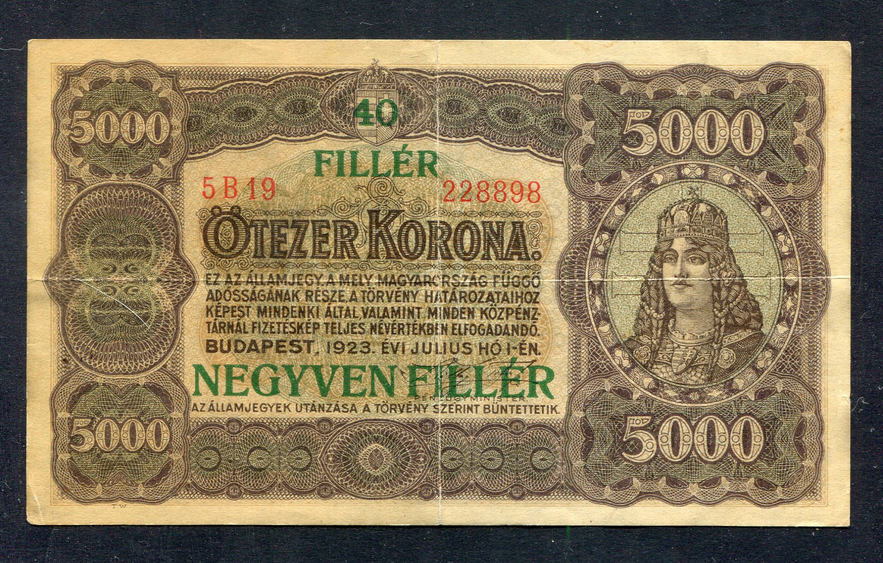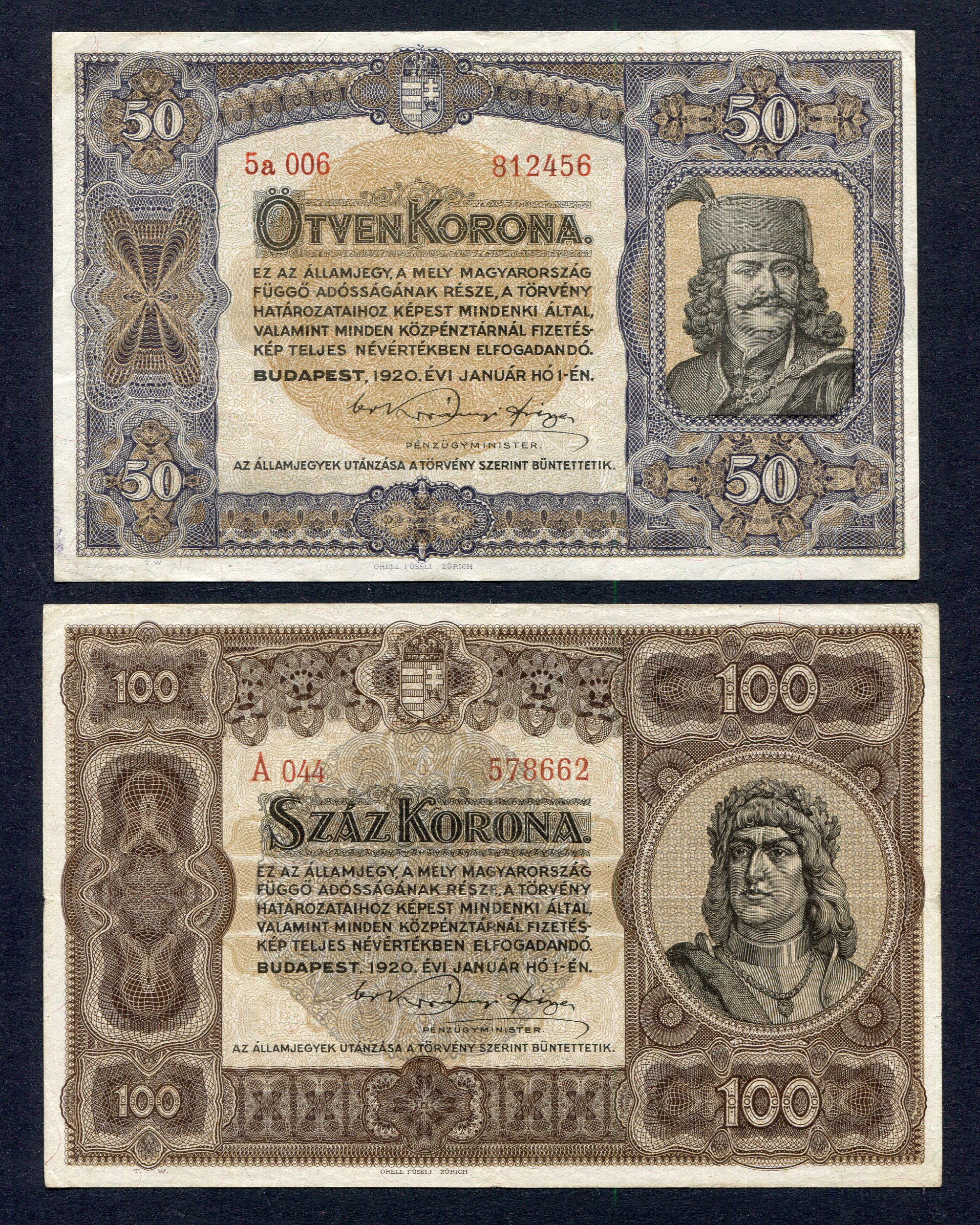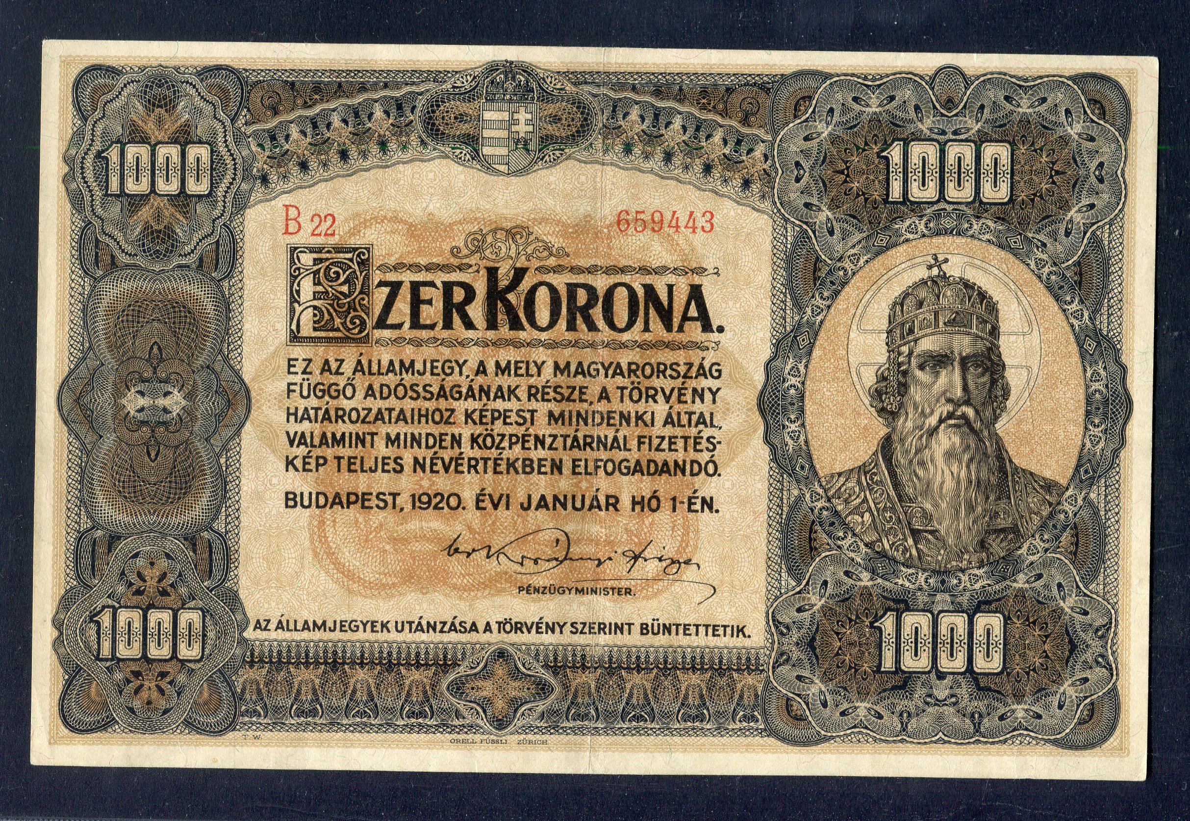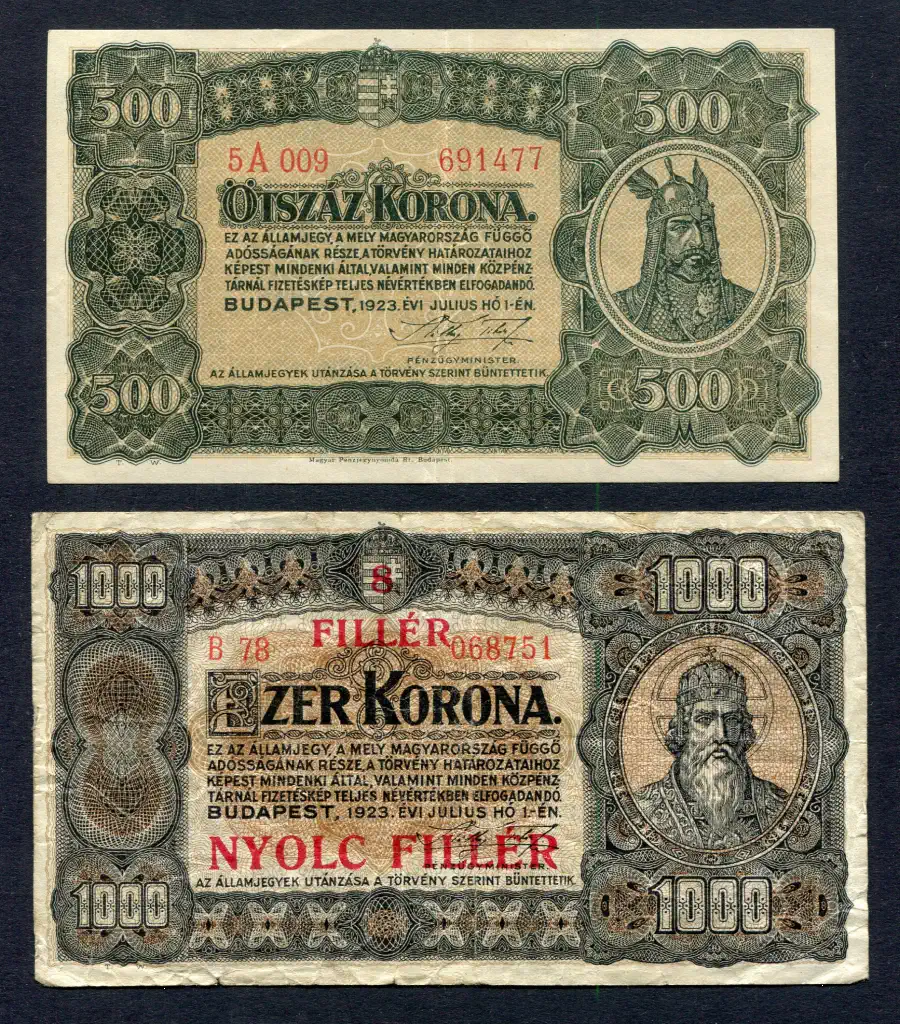 #130 1923 1000 korona (80 fillér FB) VF + 500 korona EF (2 db)
