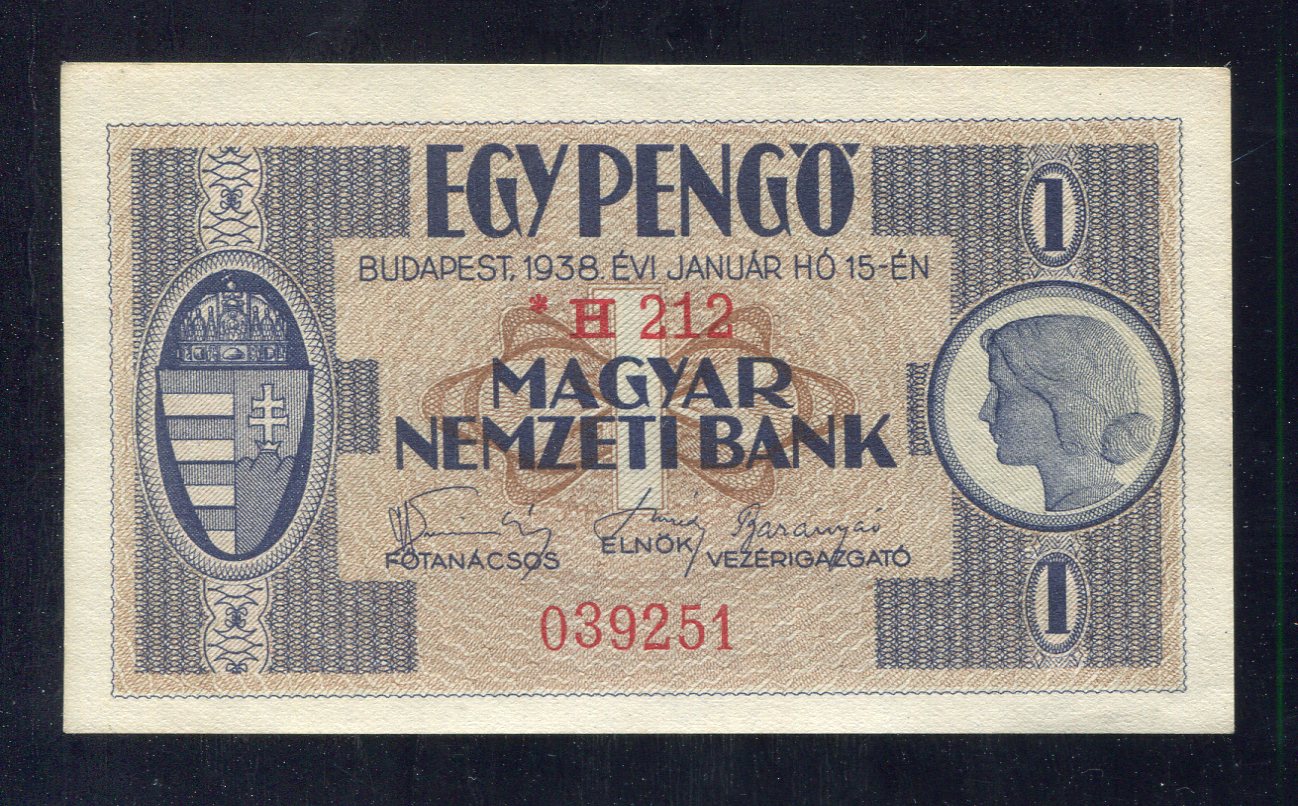 #148 1938 1 pengő (csillagos ; hajtatlan)