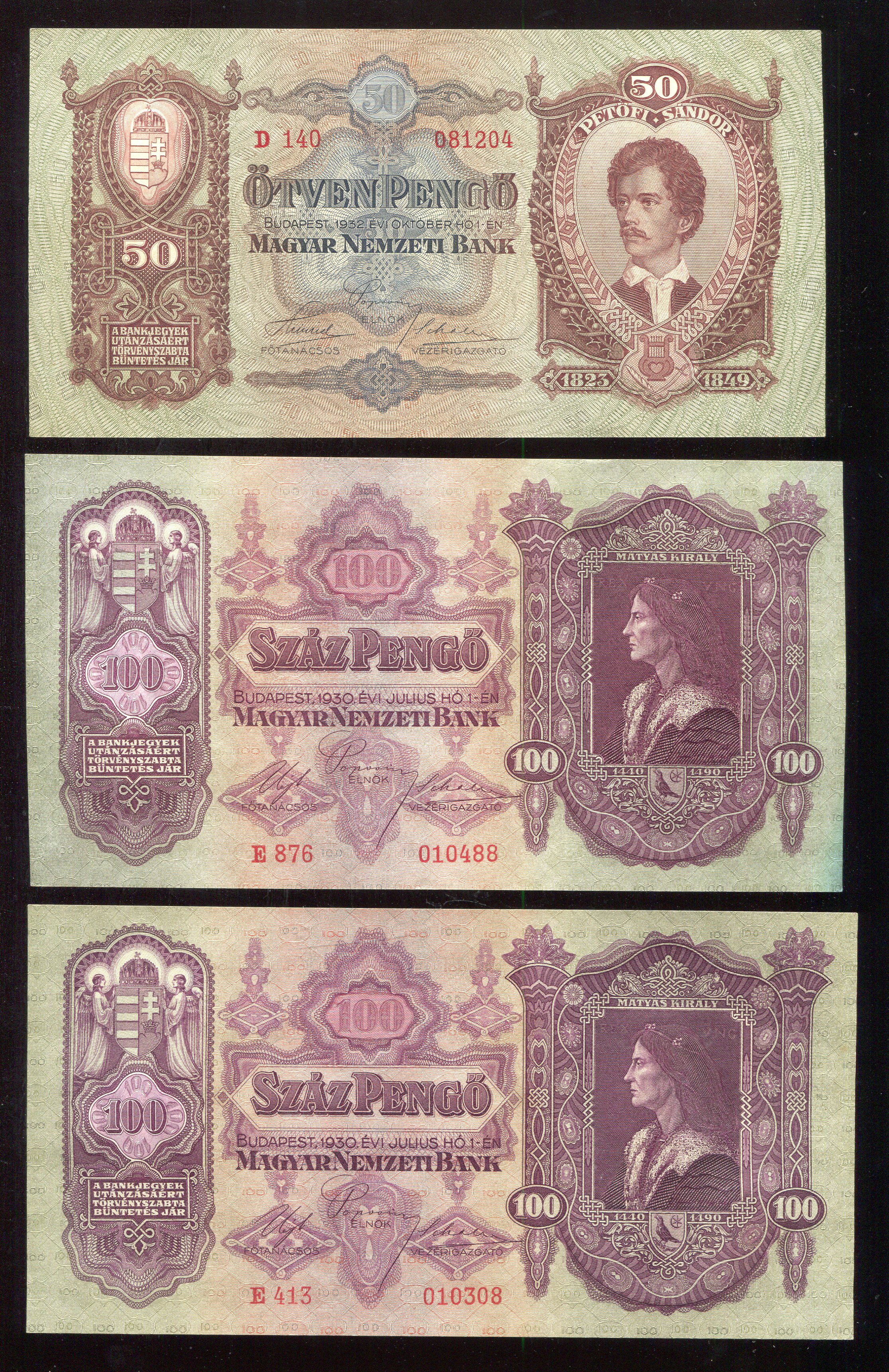 #149 1930 2 db 100 Pengő + 1932 50 Pengő (3 db)