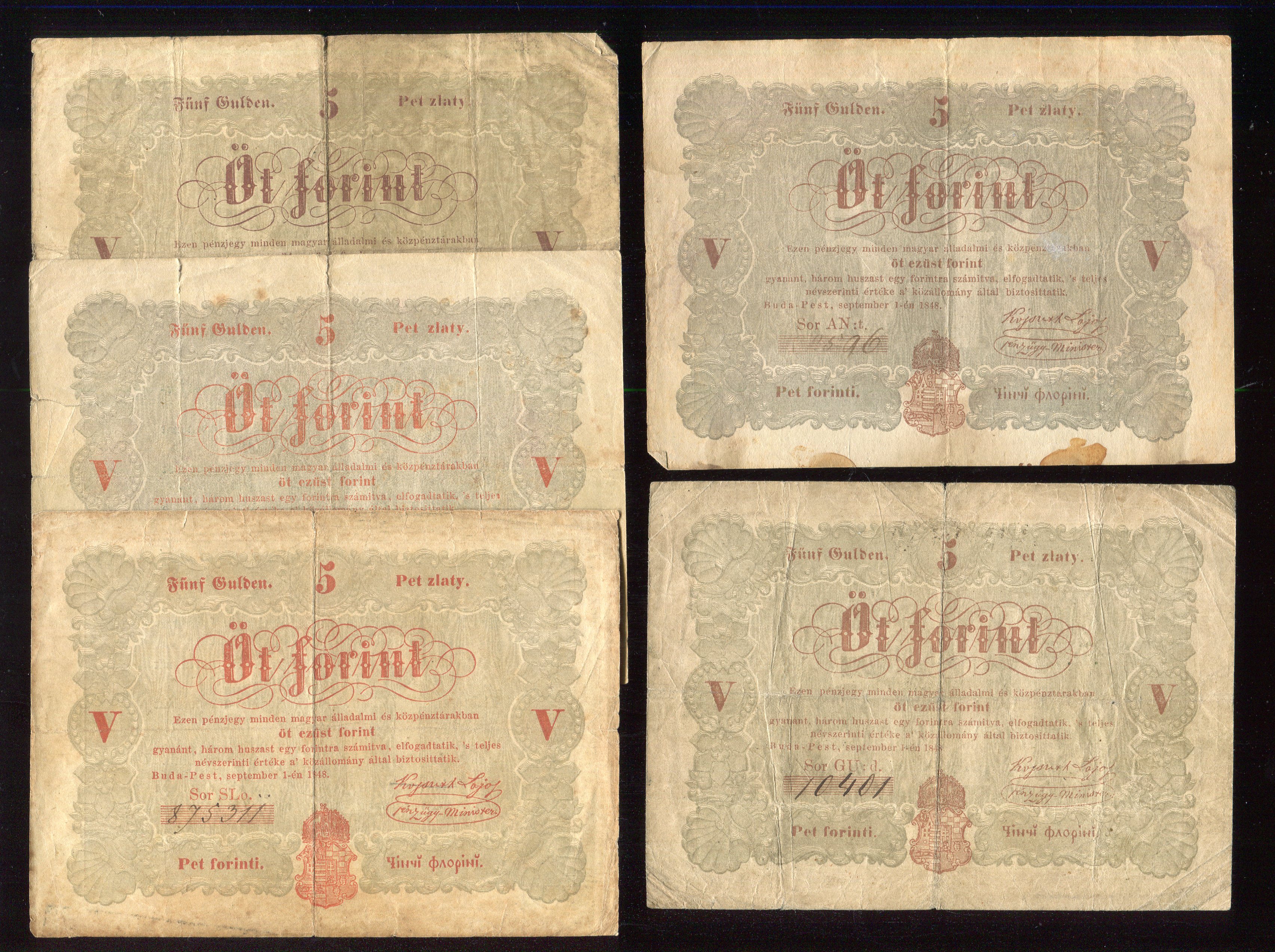 #155 1848 Kossuth 5 Forint csomag (5 db)