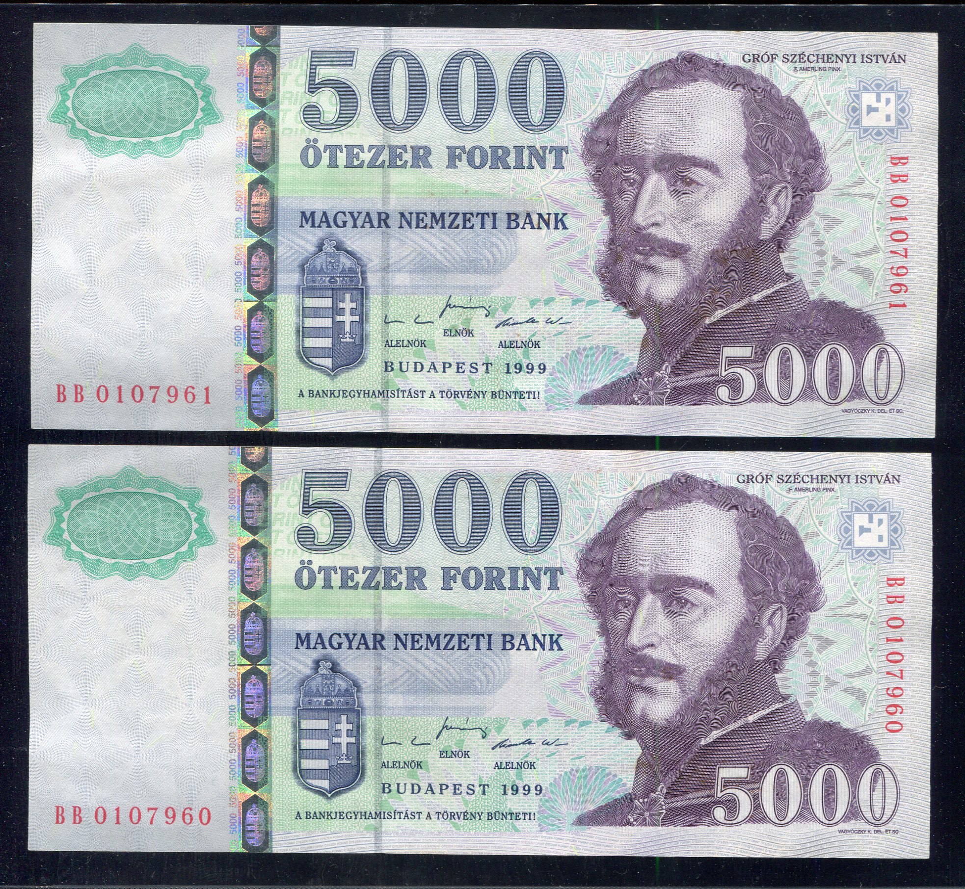 #164 1999 BB sorszámkövető 5000 Forint pár (hajtatlan)
