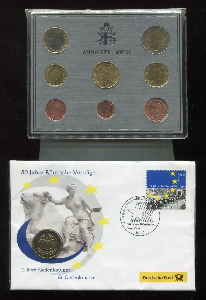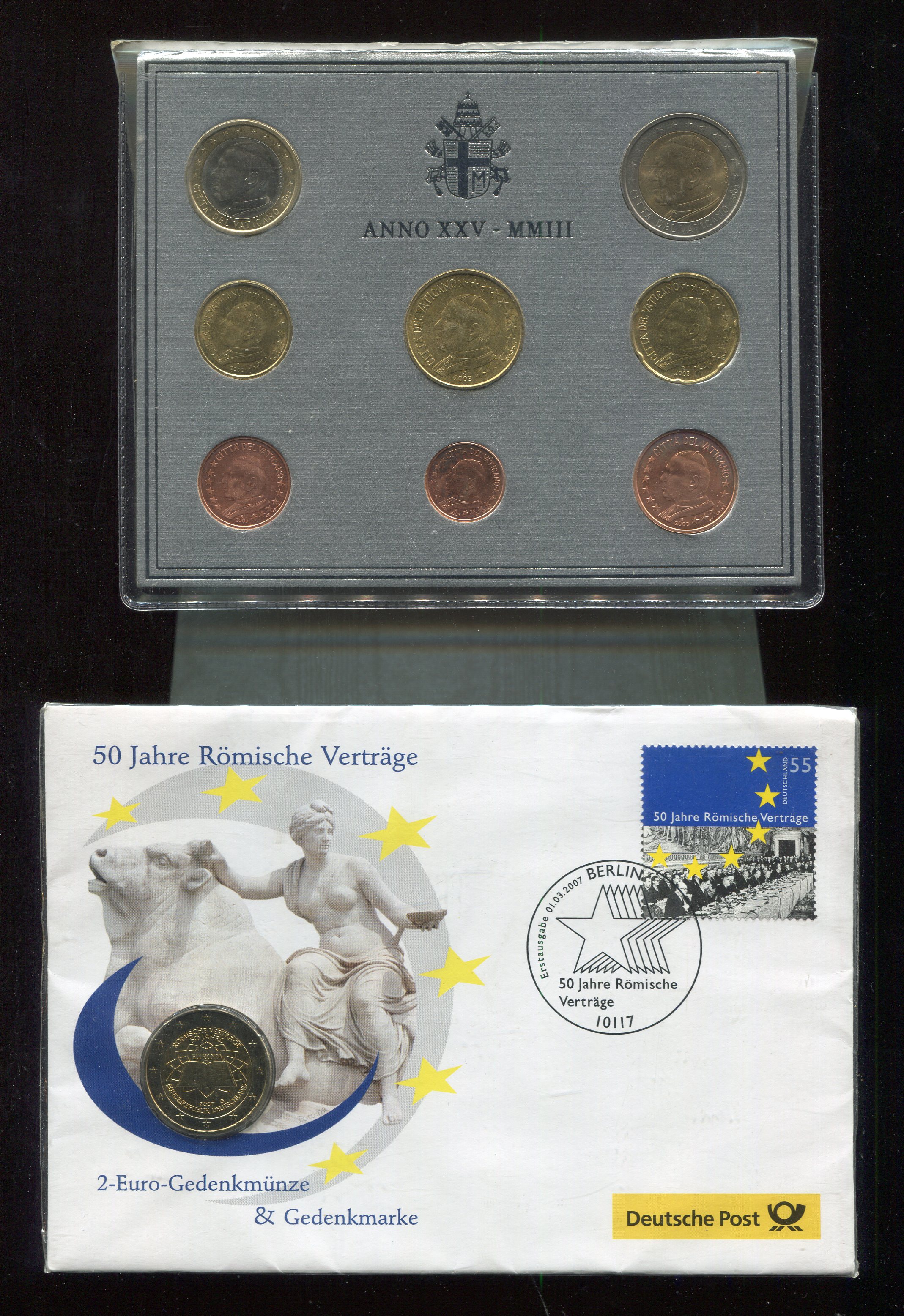 #175 2003 Vatikán Euro forgalmi sor + 2007 Németország emlék 2 Euro borítékolt