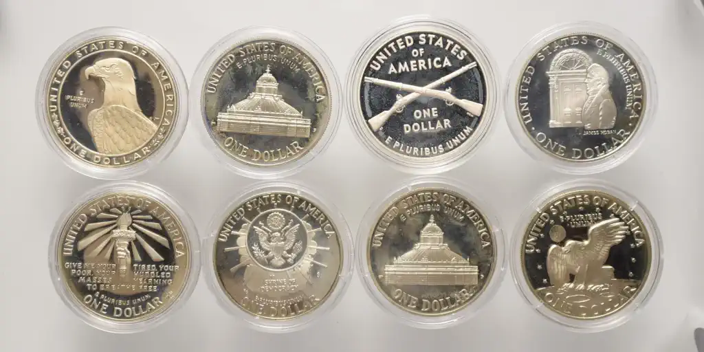 Megnevezés: USA ezüst emlék dollár csomag (8 db)