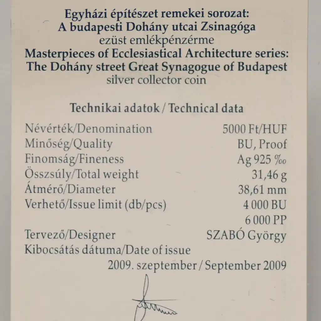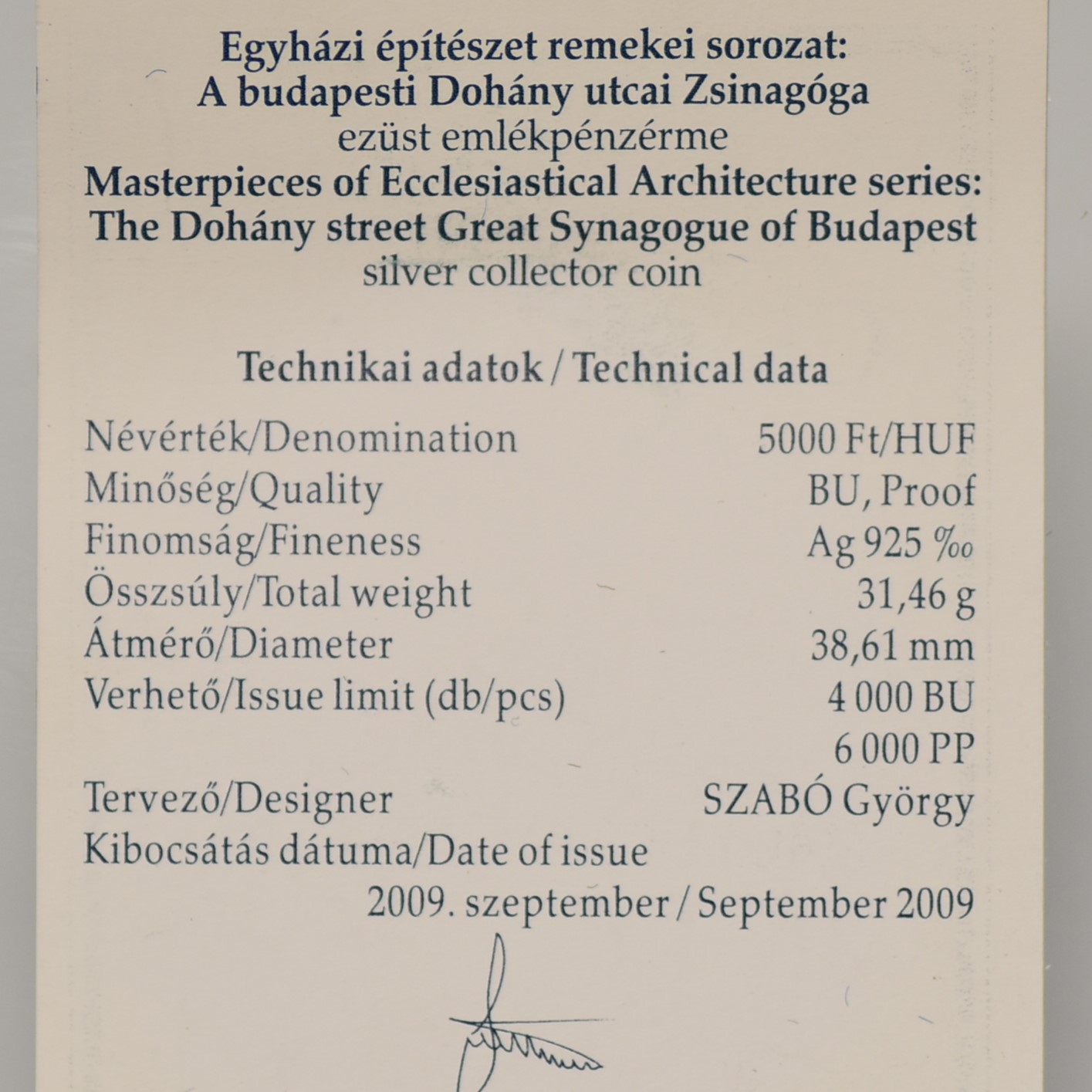 Megnevezés: 2009 Zsinagóga ezüst 5000 Forint PP + certi