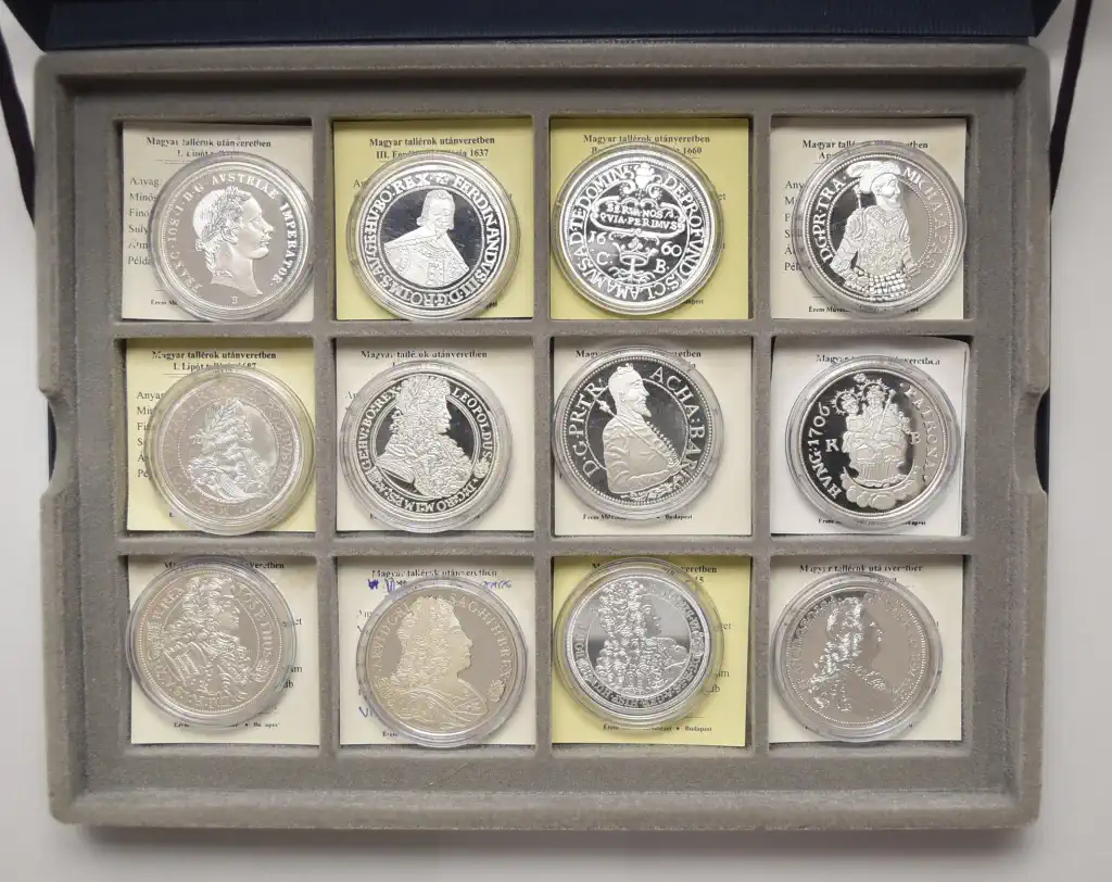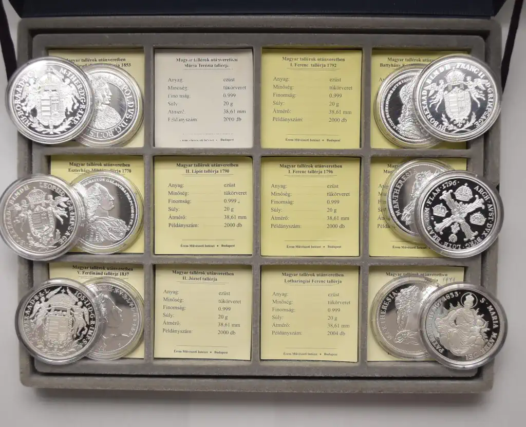 Megnevezés: Magyar Tallérok színezüst utánverete (48 x 20 g - 960 g ezüst) + certi