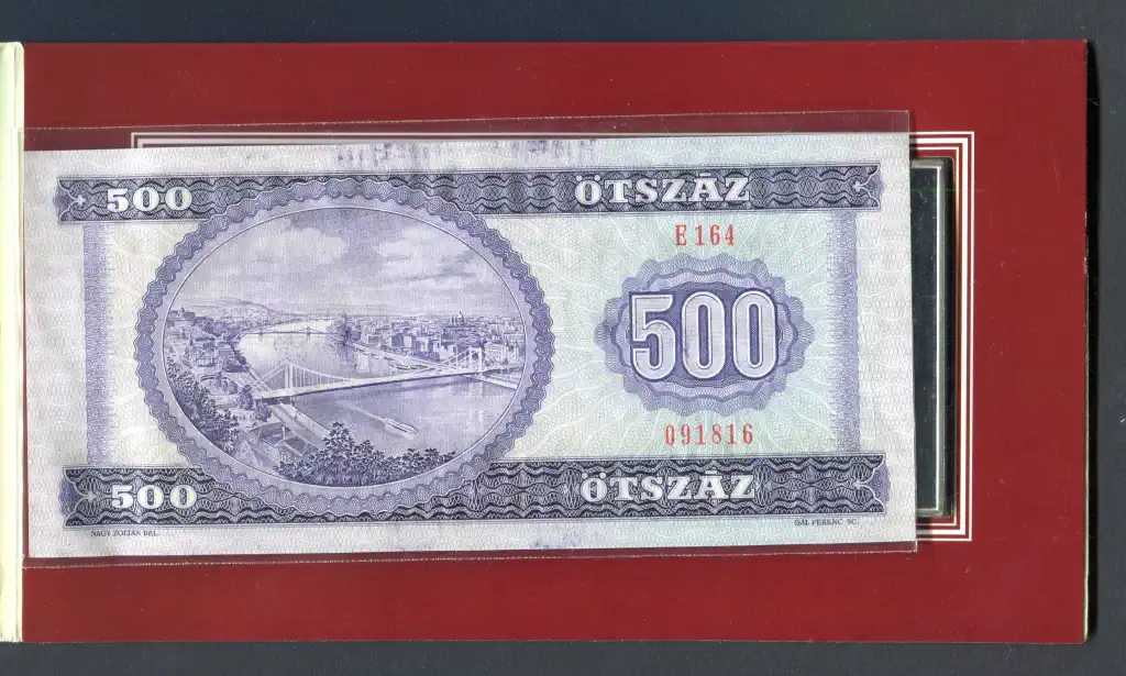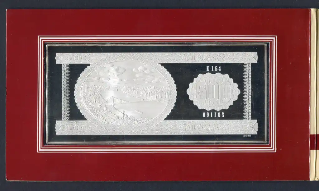 Megnevezés: 1990 MNB 500 Forint UNC + színezüst bankjegyveret (7 uncia)