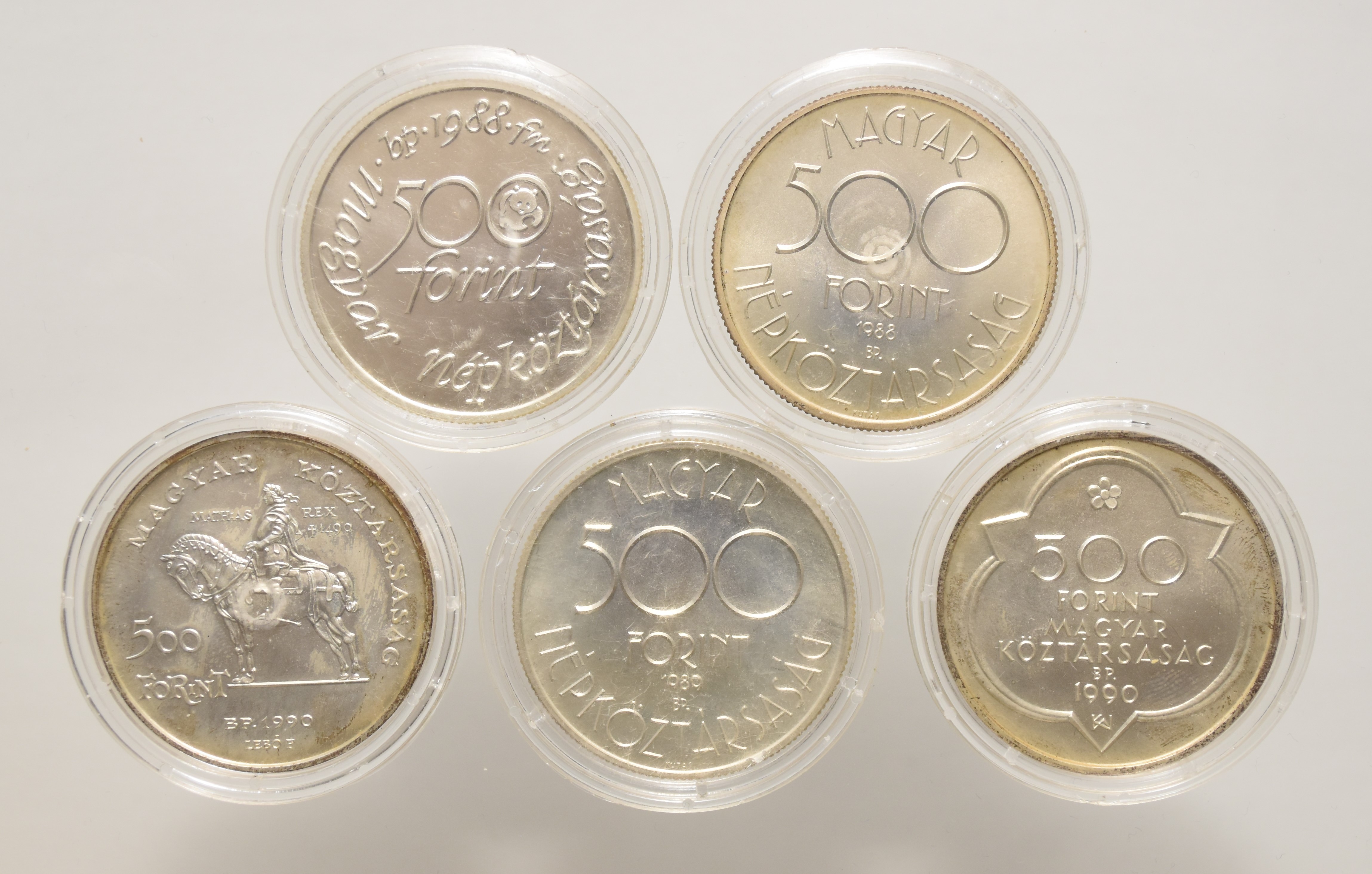 Megnevezés: MNB ezüst 500 Forint emlékpénz LOT (5 db) BU