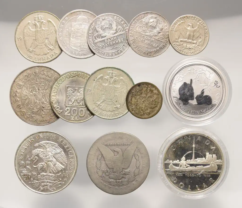 Megnevezés: Vegyes világ ezüstpénz LOT (13 db)