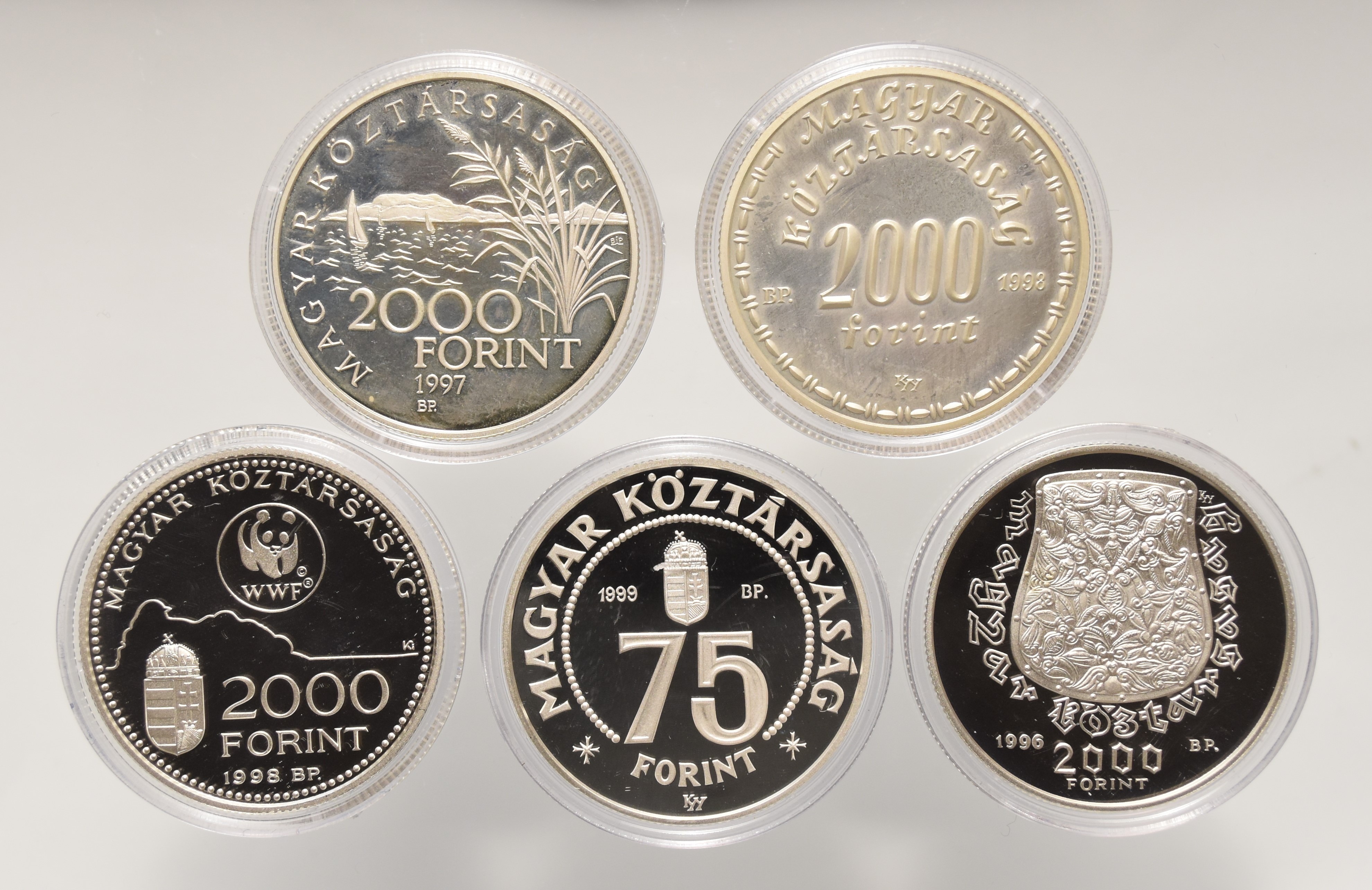 Megnevezés: MNB ezüst emlékpénz LOT (5 db) BU/PP
