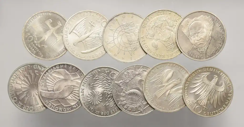 Megnevezés: Németország ezüst emlék 10 márka csomag (11 db)