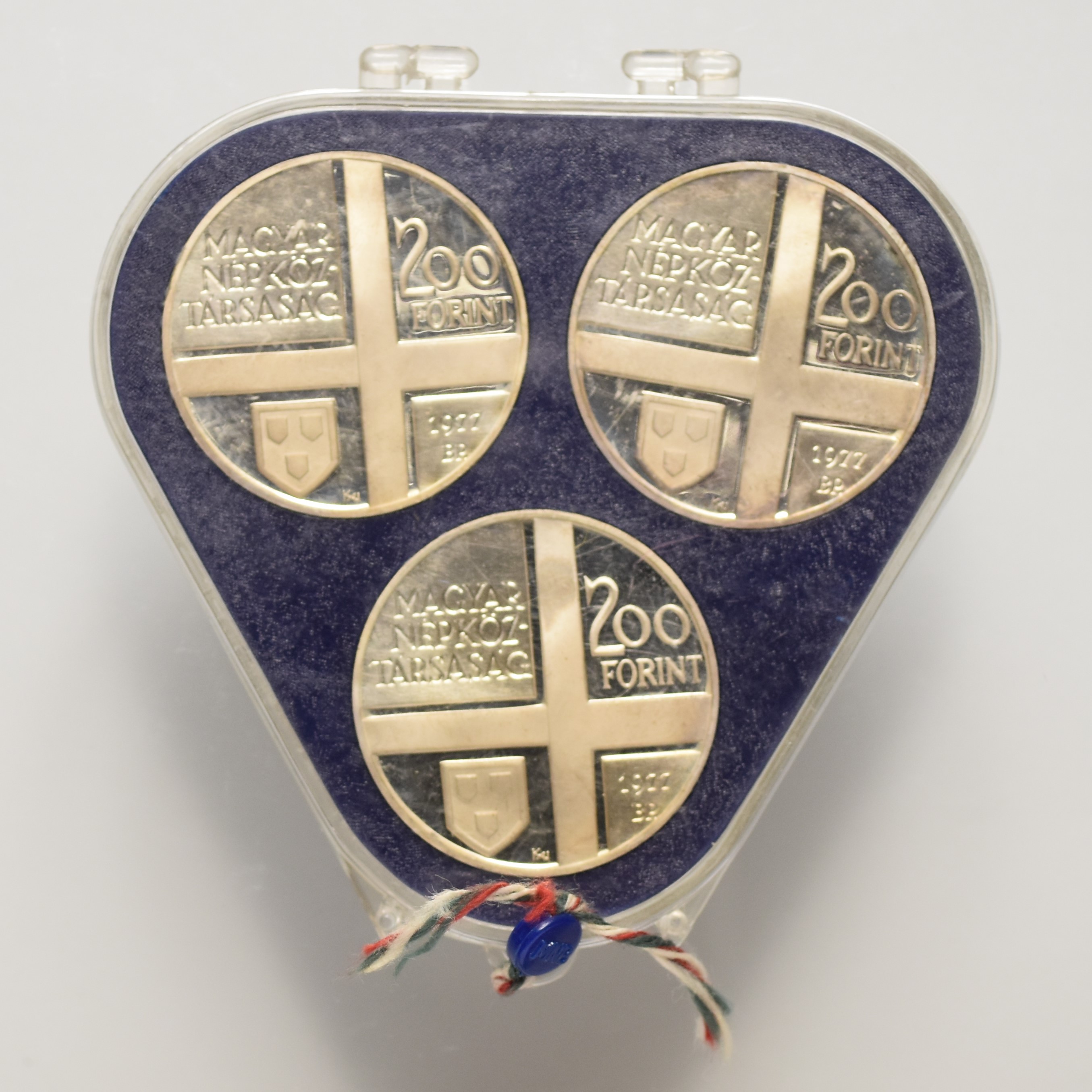 Megnevezés: 1977 Festő sor ezüst 200 Forint (3 db, gyári tokban) PP
