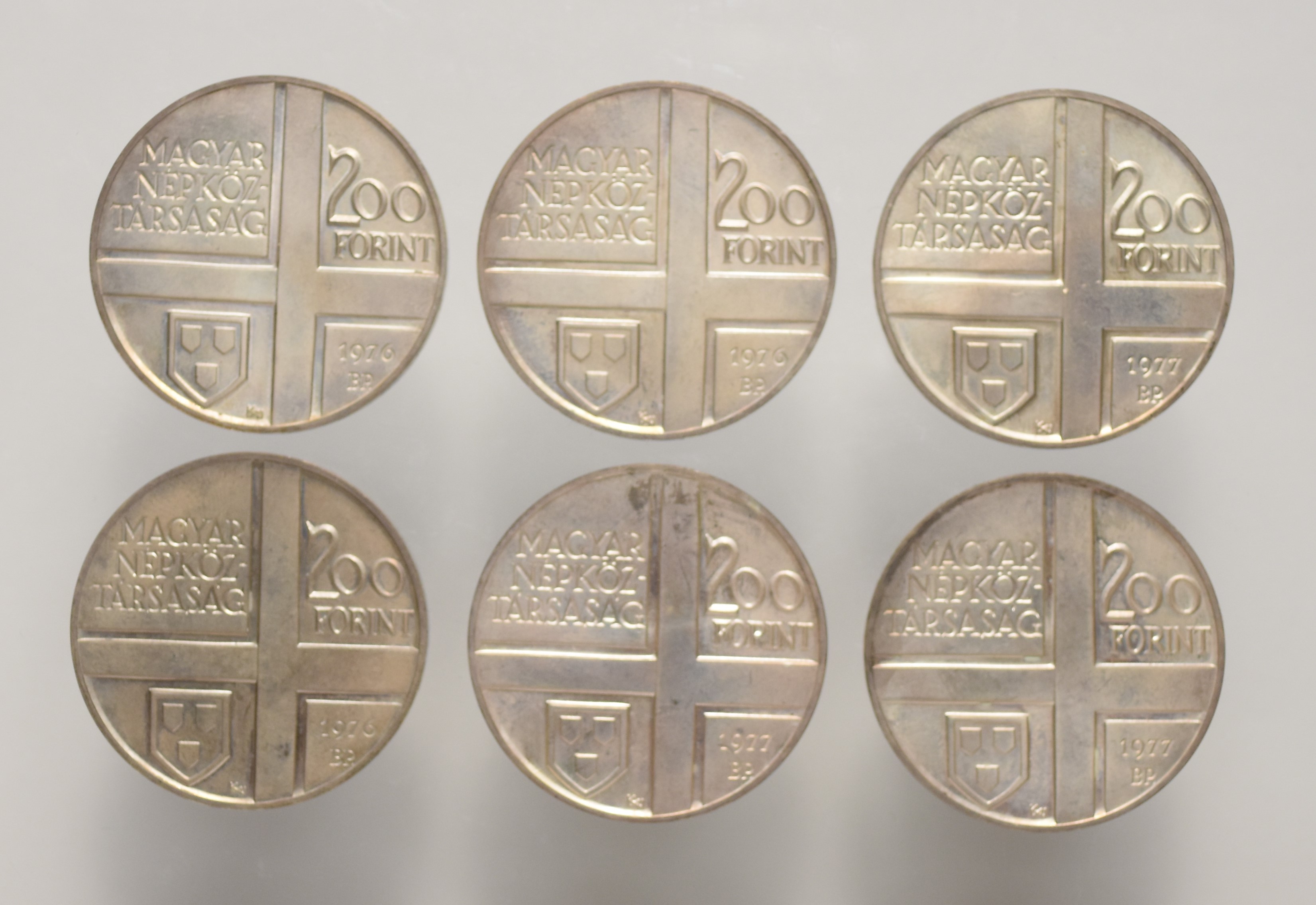 Megnevezés: 1976 / 1977 Festő sor ezüst 200 Forint ( 6 db ) BU