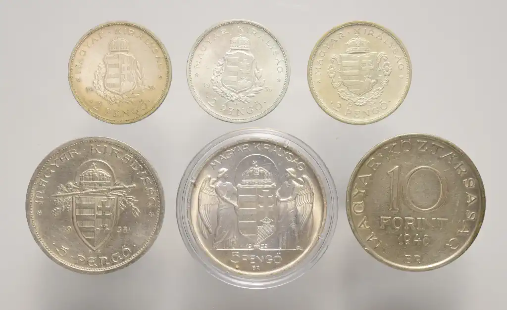 Megnevezés: Horthy korszak ezüst Pengő LOT + 1948 10 Forint (6 db)