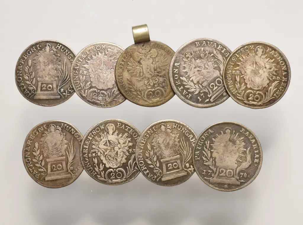 Megnevezés: Mária Terézia rongált 20 Krajcár LOT (9 db)