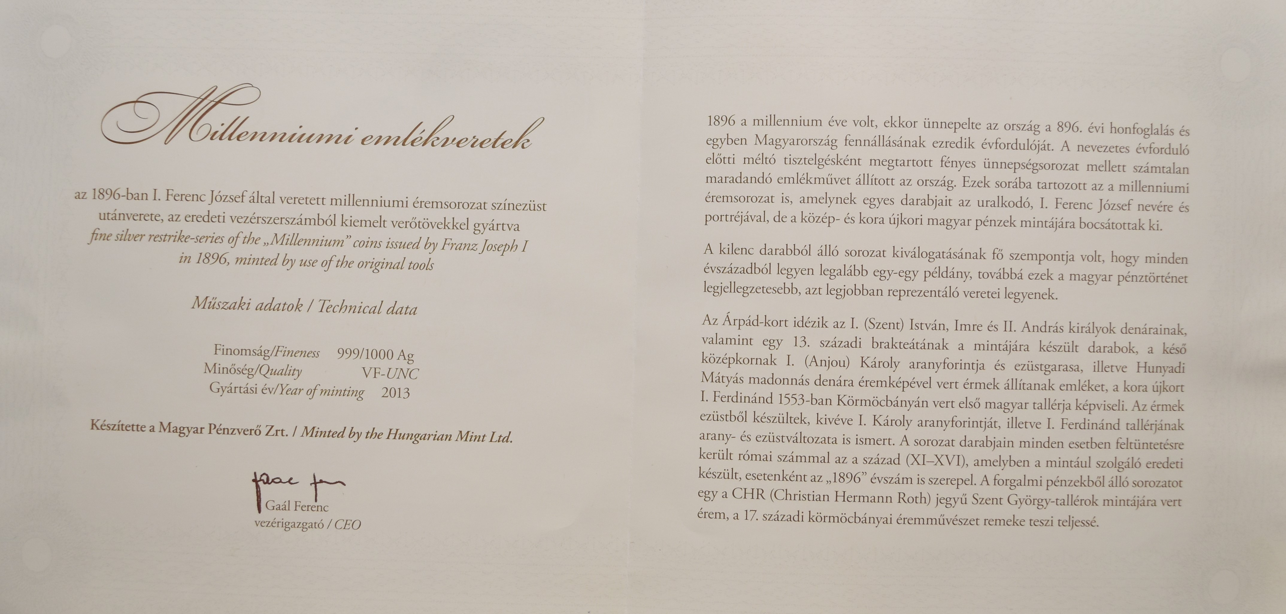 Megnevezés: Mesterdarabok 1896 Millennium emlék sor