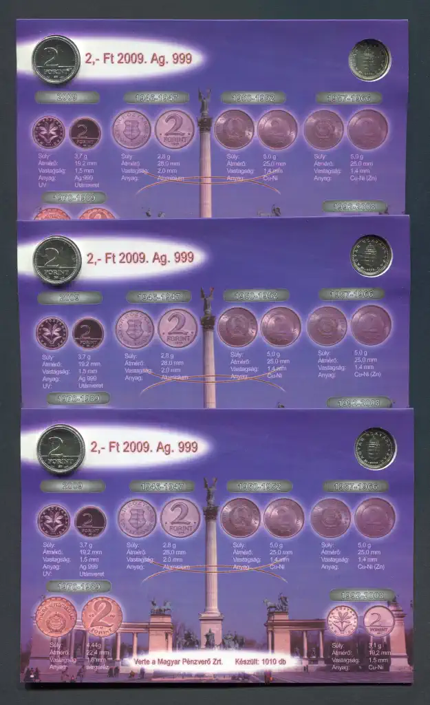 Megnevezés: 2009 színezüst 1 - 2 Forint bliszter (3 db)