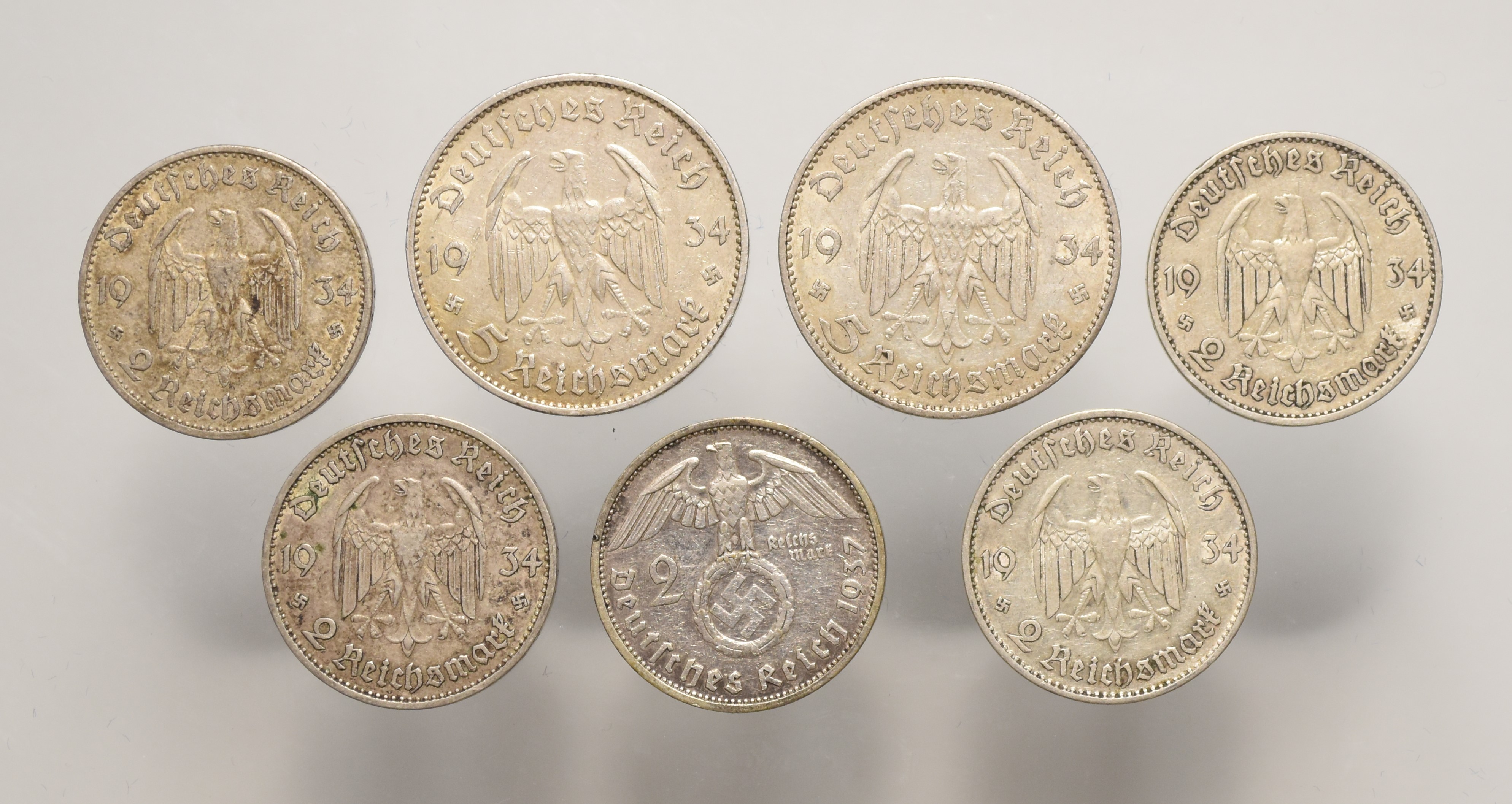 Megnevezés: Németország - III. Birodalom ezüst Márka csomag (7 db)
