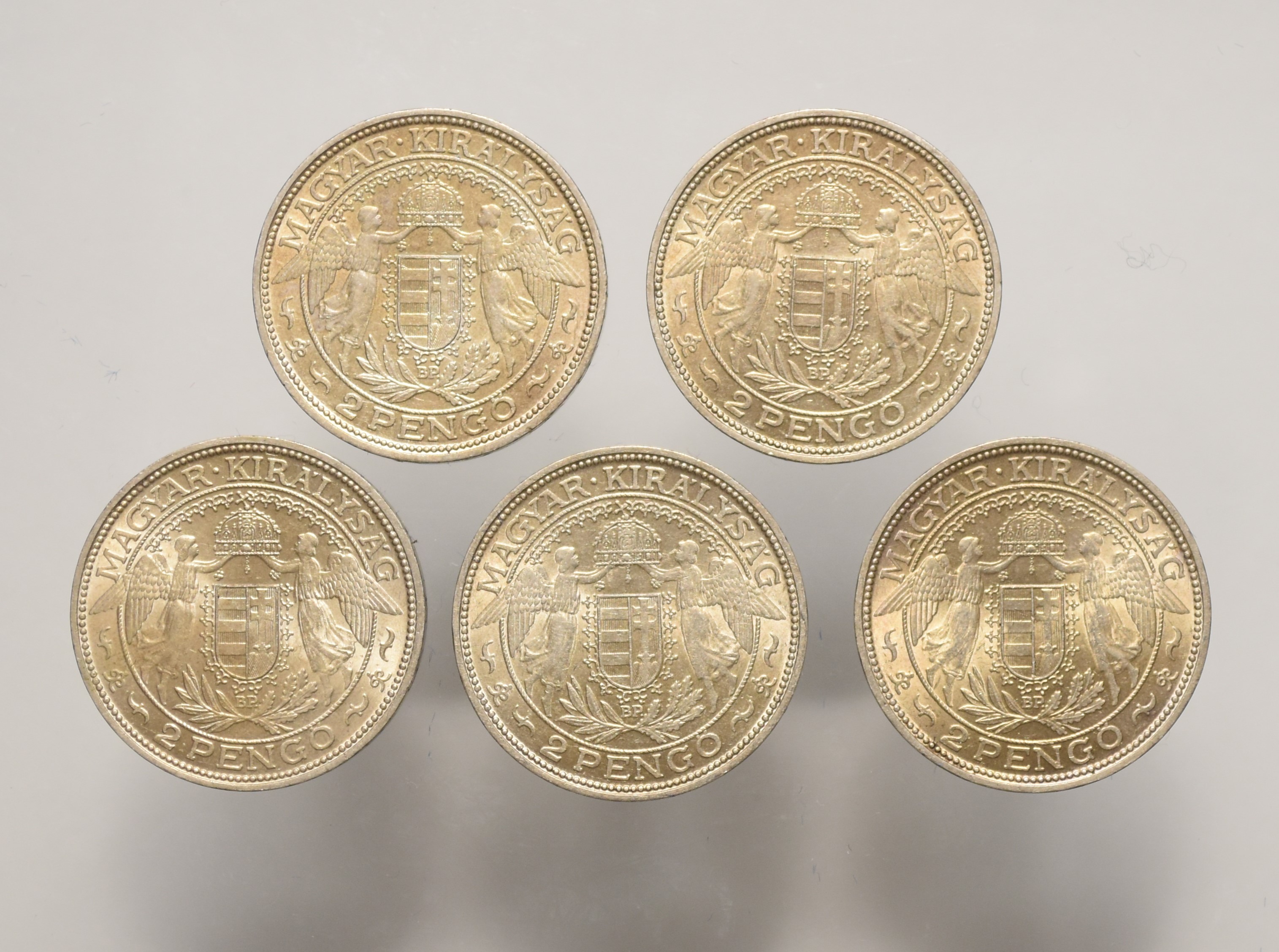 Megnevezés: 1938 szép ezüst 2 Pengő LOT (5 db)