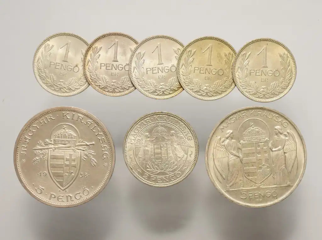 Megnevezés: 1938 / 39 szép ezüst Pengő csomag ( 8 db)