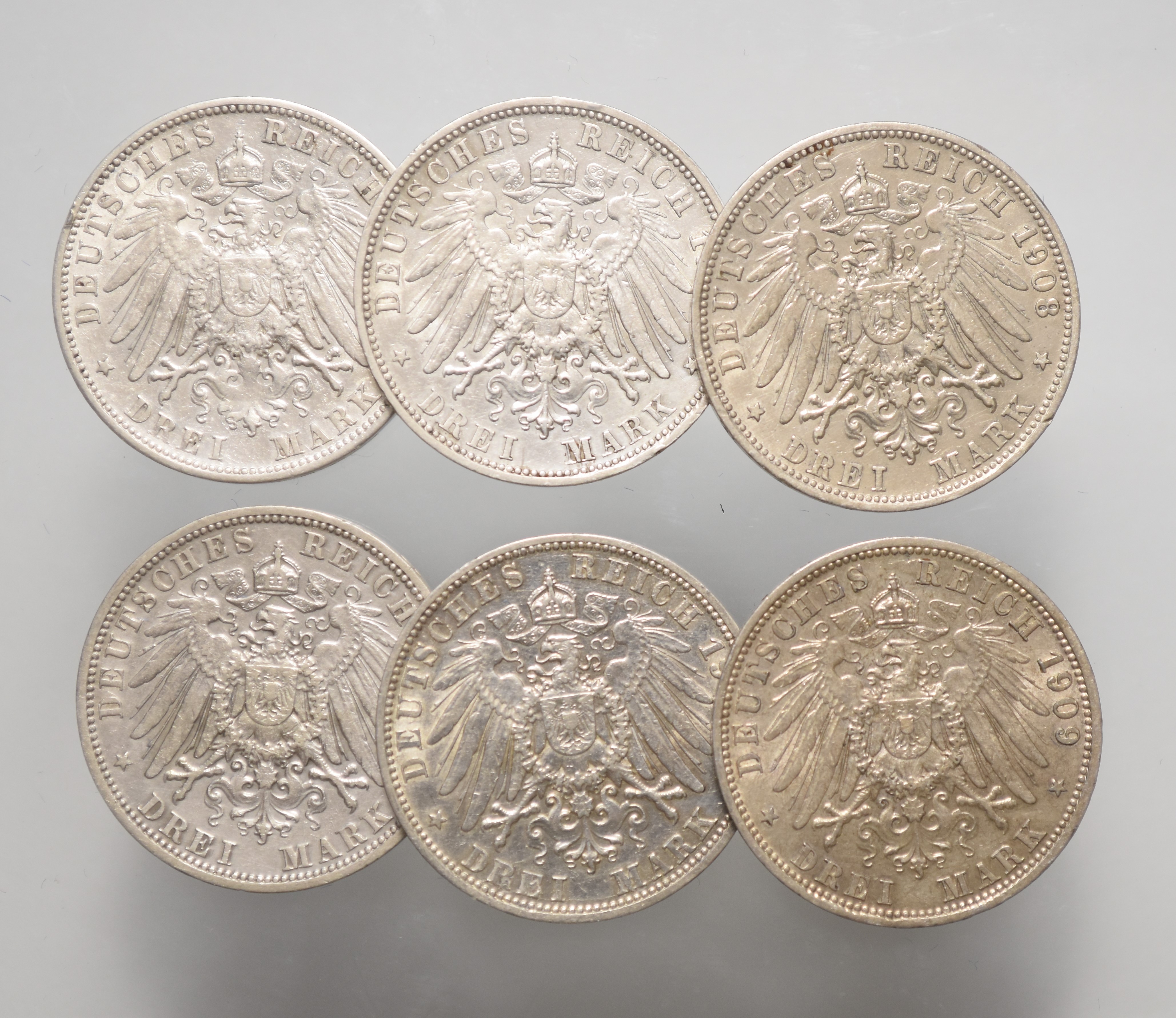 Megnevezés: Németország ezüst 3 Márka csomag (6 db)