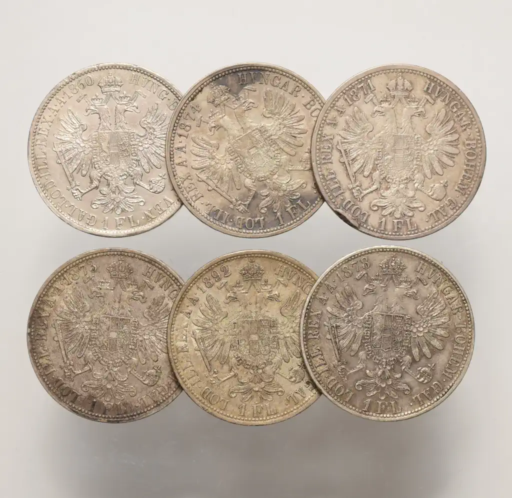Megnevezés: Ferenc József ezüst 1 Florin LOT (6 db)