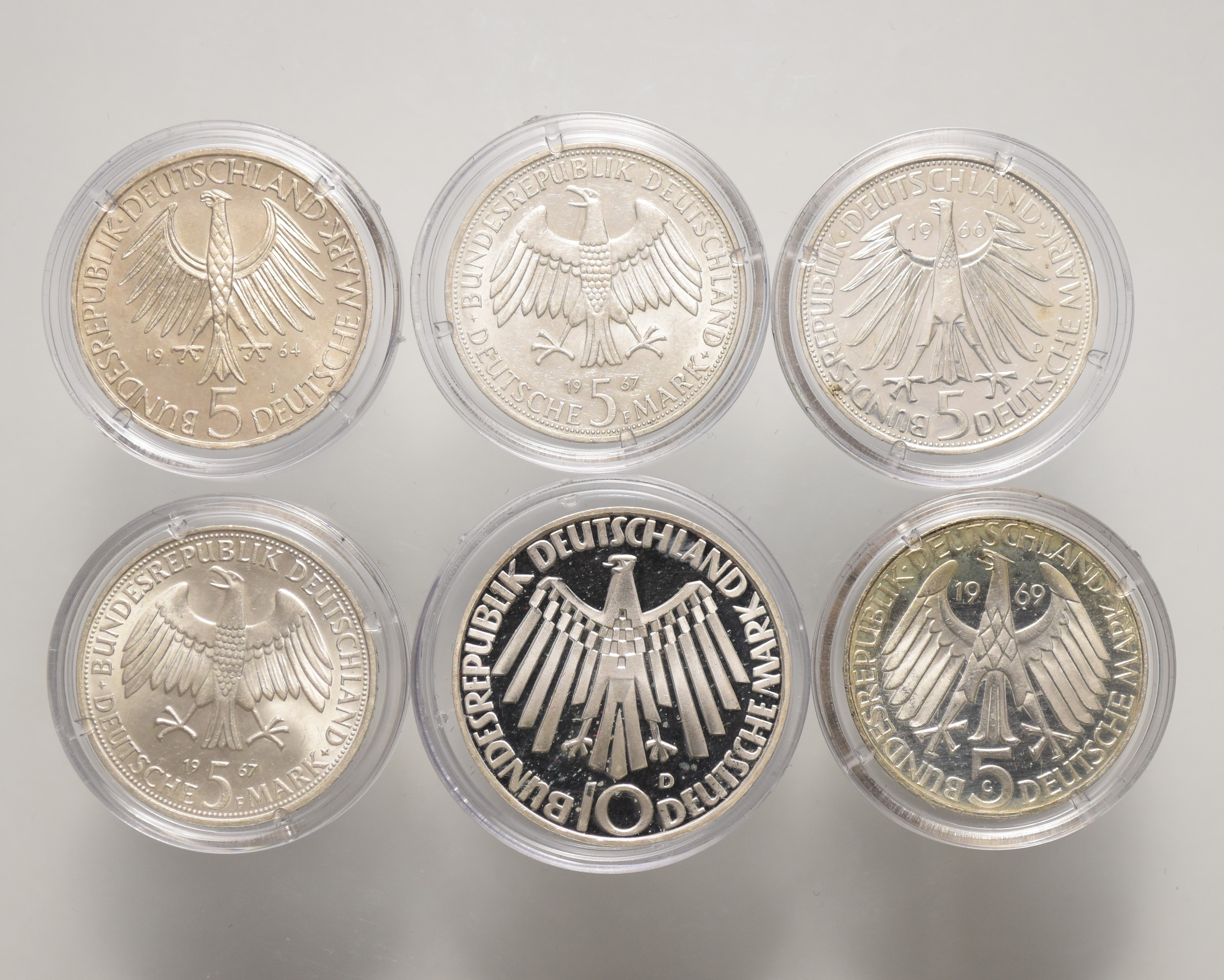 Megnevezés: Németország ezüst emlék márka LOT (6 db) BU-PP vegyesen