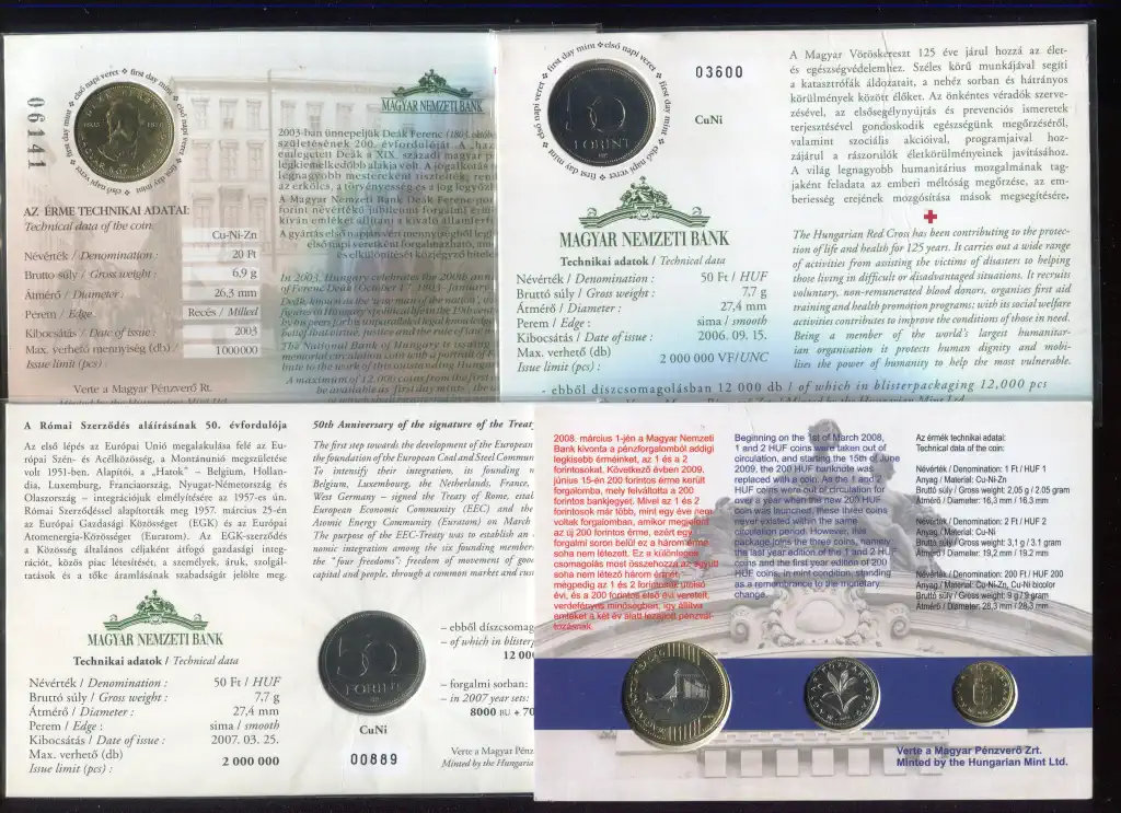 Megnevezés: Emlék forgalmi érme bliszter LOT (4 db)