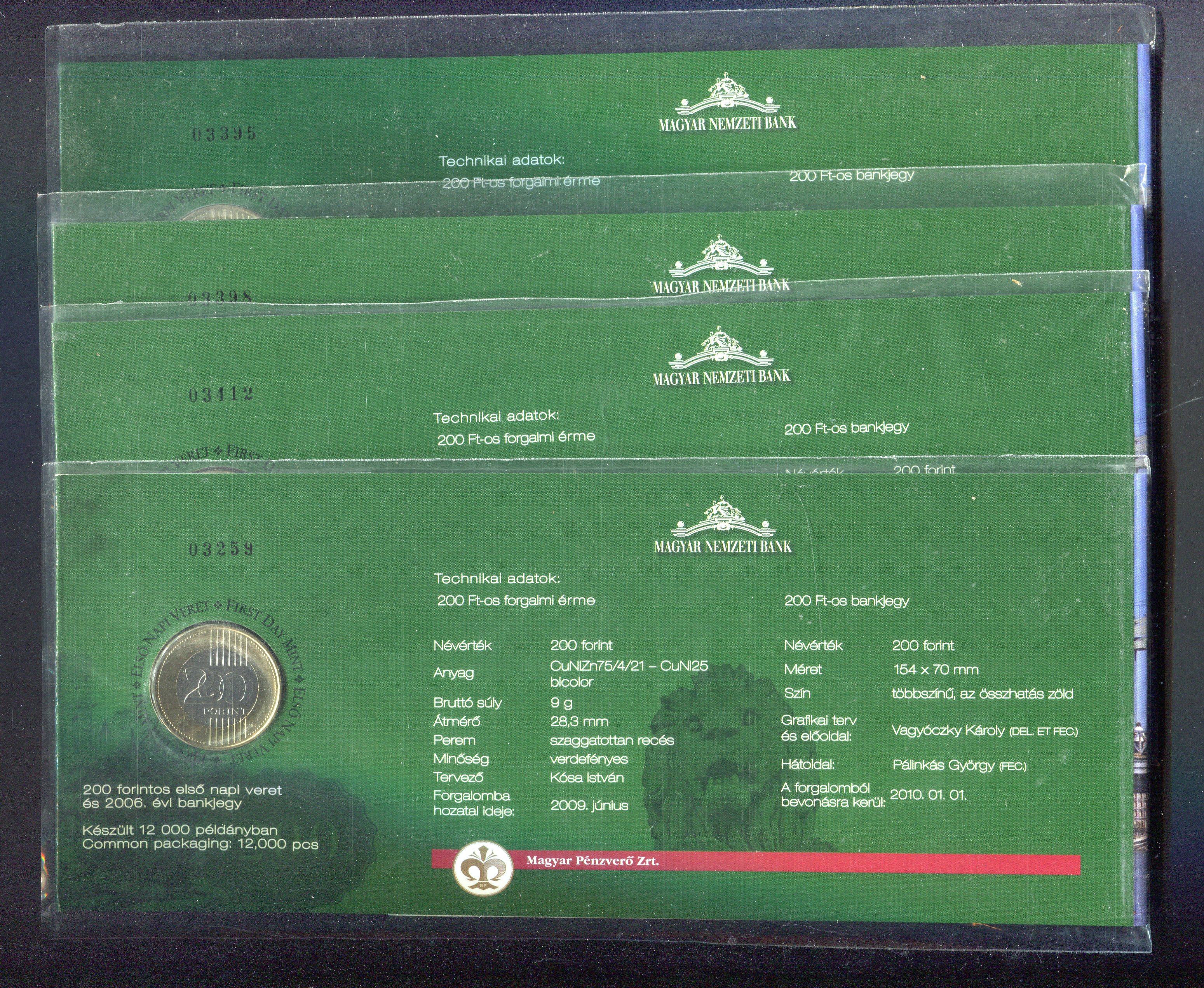Megnevezés: 2009 200 Forint érme és bankjegy bliszter LOT (4 db)
