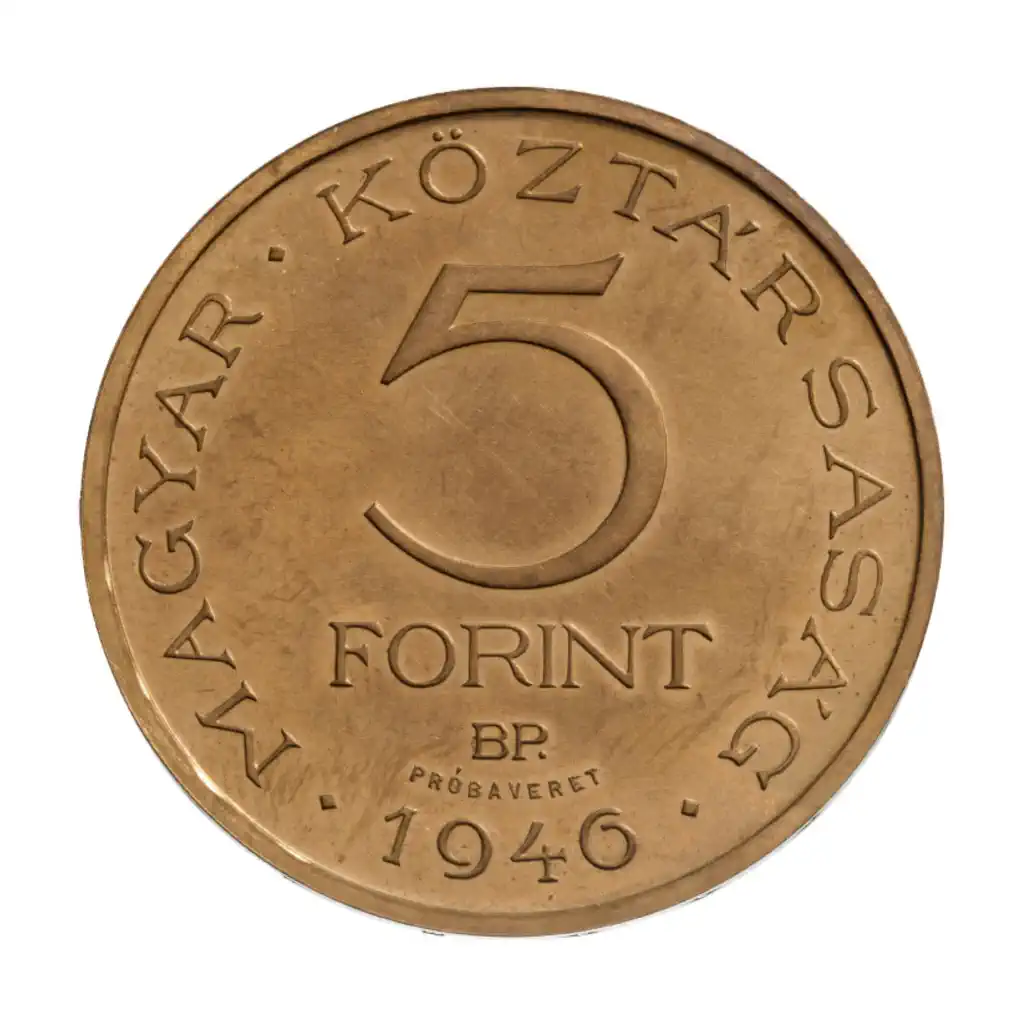 Megnevezés: 1946 Kossuth 5 forint réz próbaveret