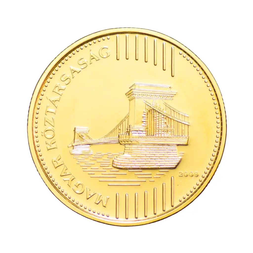Leírás: Av: MAGYAR KÖZTÁRSASÁG felirat balra, középen a Lánchd képe, jobbra évszám /Schrift nach links, in der Mitte das Bild der Kettenbrücke, daneben Jahreszahl/ 2009