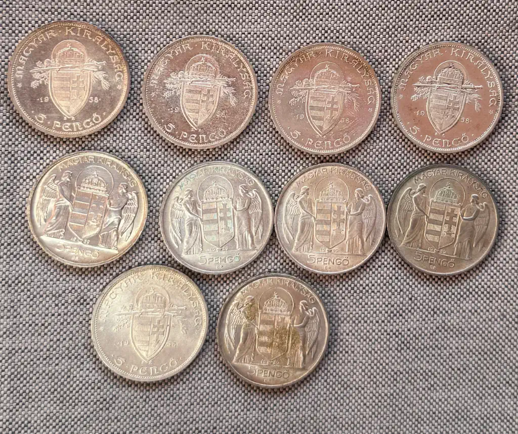 Megnevezés: 1938-1939 Horthy ezüst 5 pengő csomag