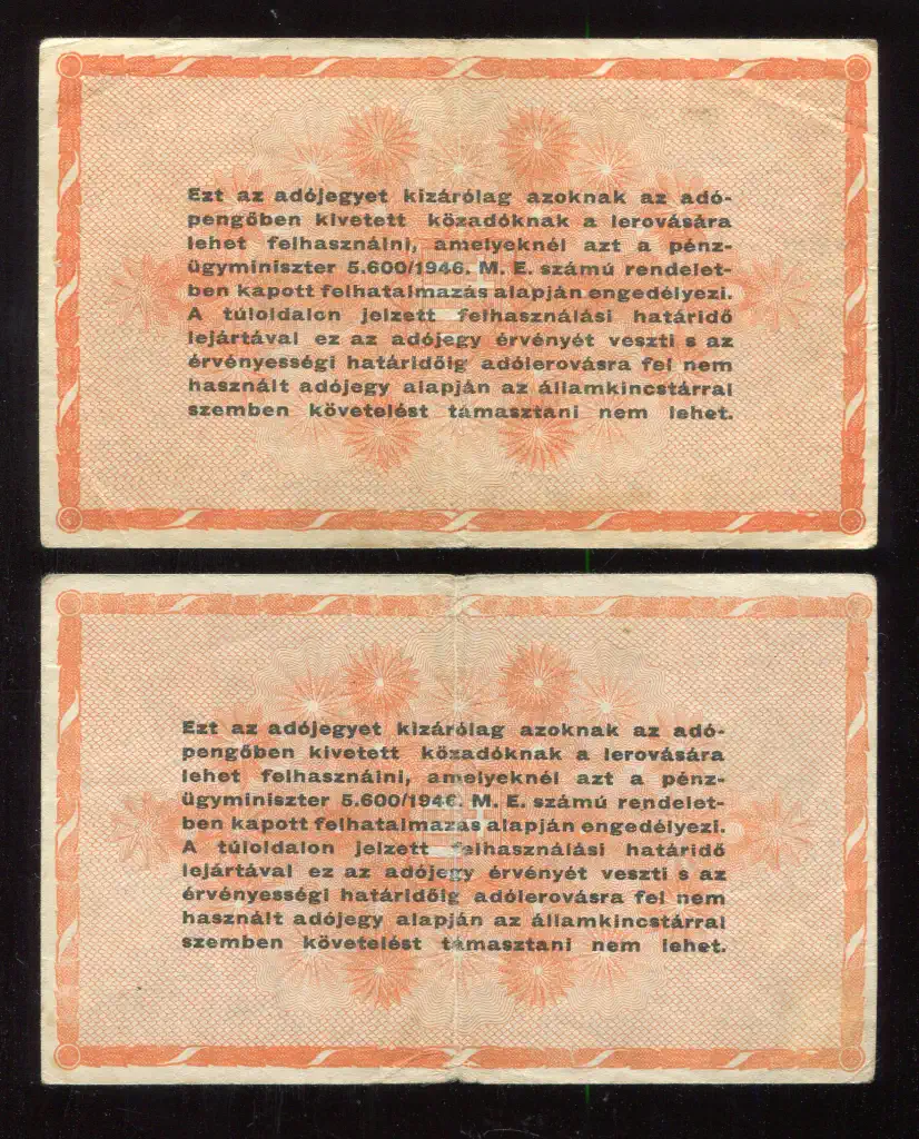 Megnevezés: 1946 100 millió Adópengő (2 db)
