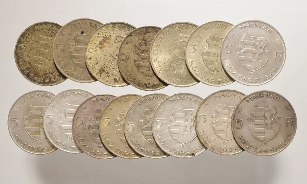 Megnevezés: 1947 / 1948 ezüst 5 Forint LOT (15 db)
