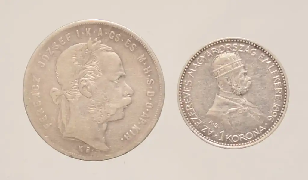 Megnevezés: Ferenc József 1873 1 forint + 1896 millenium 1 korona