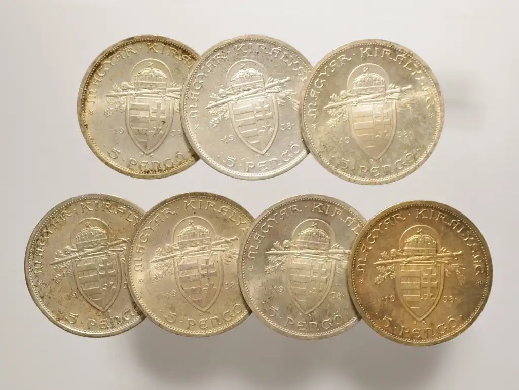 Megnevezés: 1938 Szent István ezüst 5 Pengő LOT (7 db)